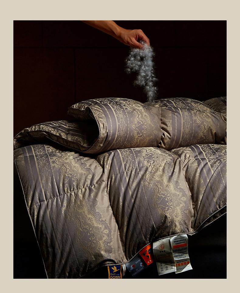 • 91家纺网 家纺一手货源 找家纺 (总)暖羽屋羽绒馆 2025新款白鹅绒丝被芯  羽绒丝被 羽毛被子 婚庆羽绒被 双人加厚冬被,恒运莱 金-角度一,恒运莱 金-角度二
