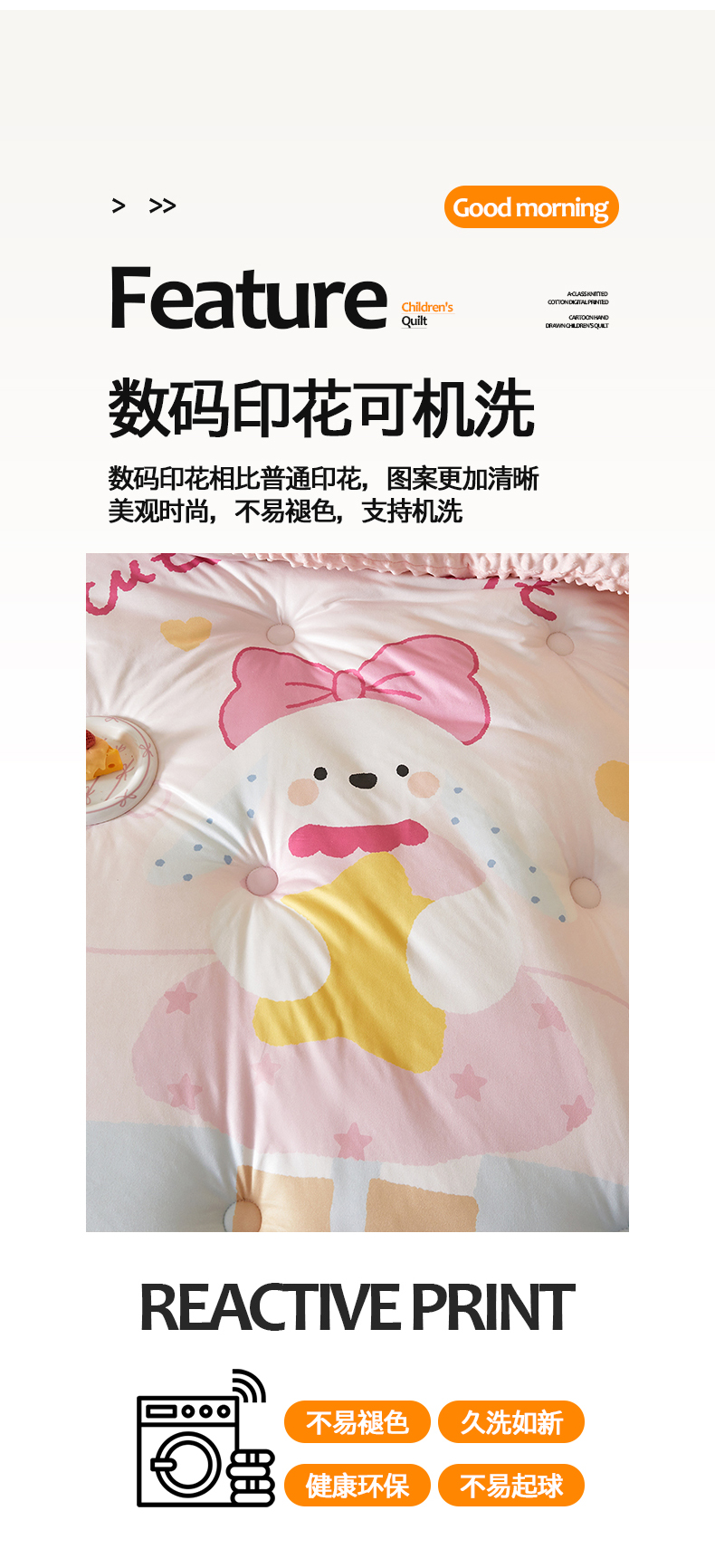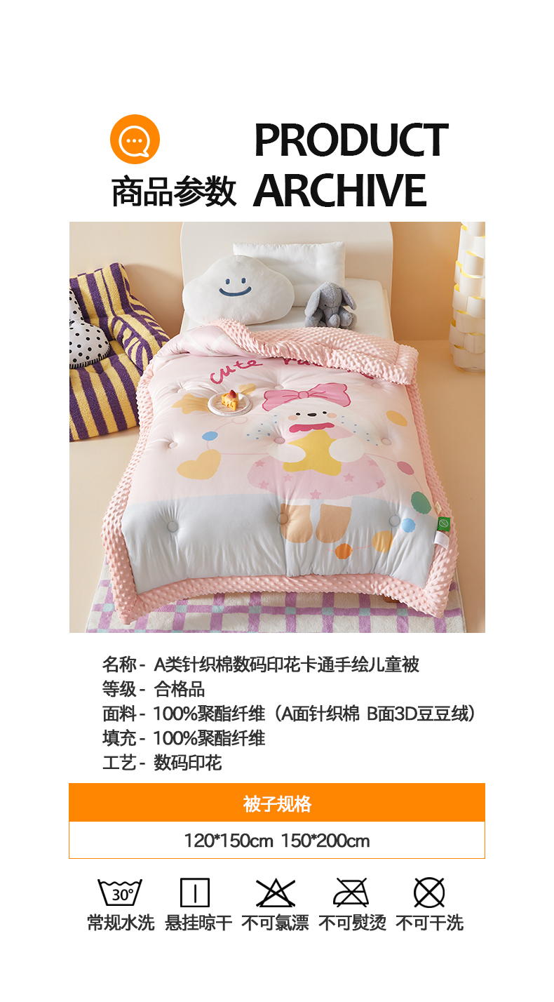 商品名称:荷马之梦 2025新款A类针织棉数码印花卡通手绘豆豆绒儿童被芯春秋被冬被-安睡系列 爱心兔