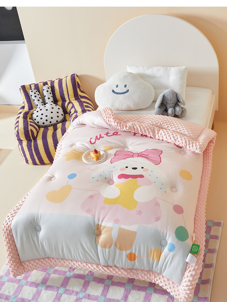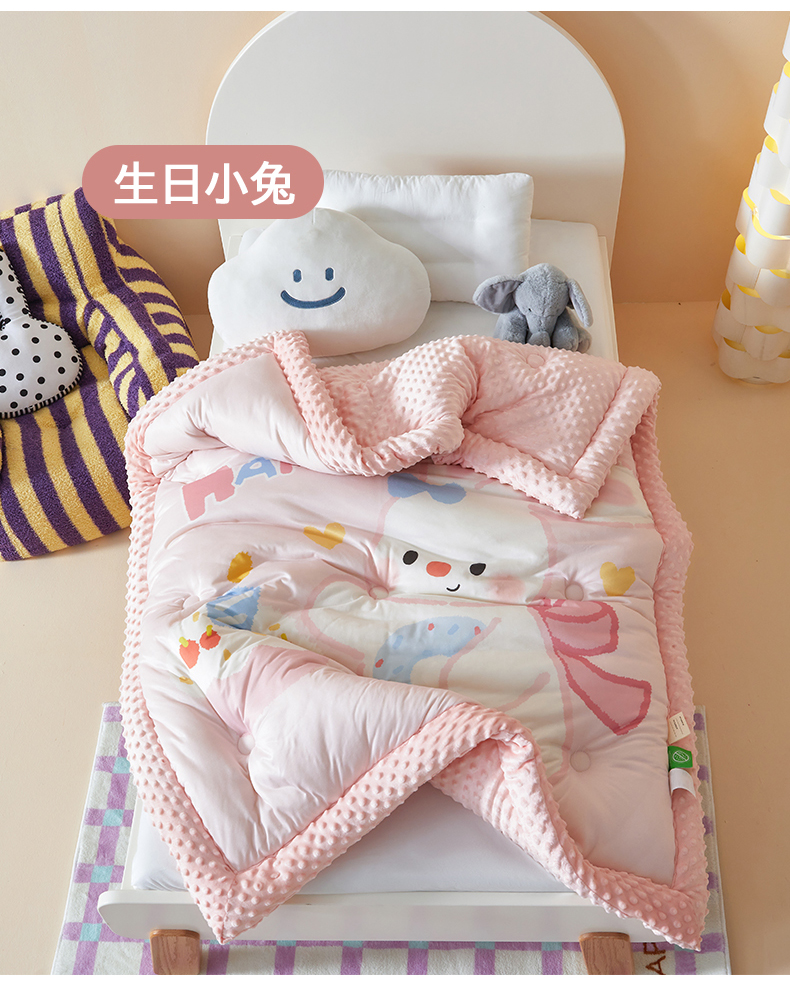 荷马之梦 2025新款A类针织棉数码印花卡通手绘豆豆绒儿童被芯春秋被冬被-安睡系列 爱心兔
