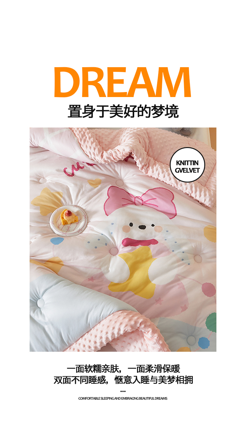 (总)荷马之梦 2025新款A类小版针织棉数码印花手绘原创豆豆绒被芯儿童被子春秋被冬被-梦境,精灵小兔,恐龙之家,跑跑小熊猫B,糖果女孩,小王子