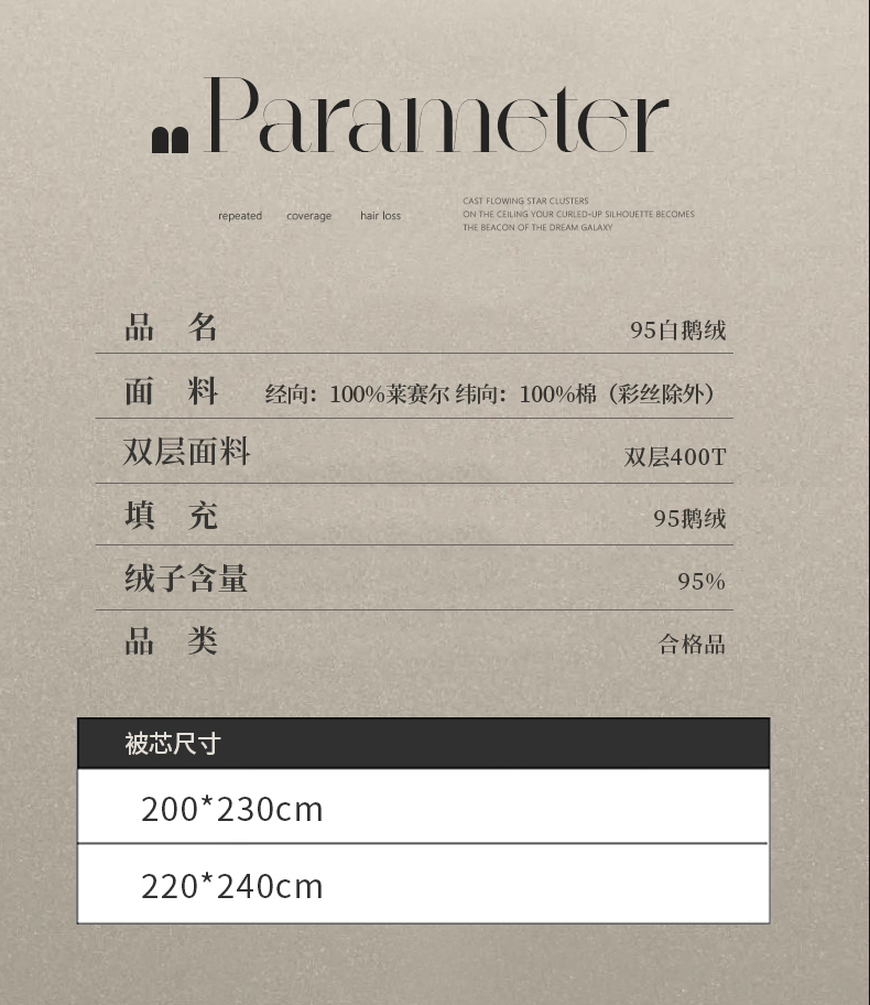 220*240填充1400克95白鹅绒冬被
