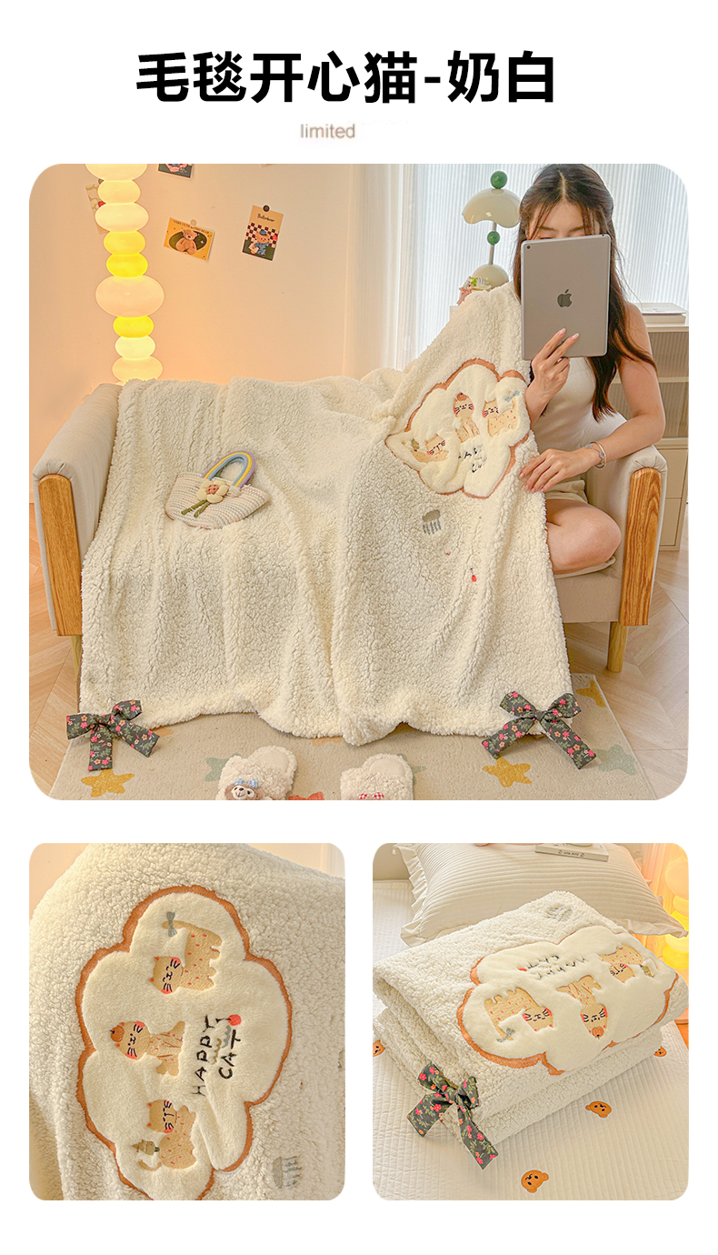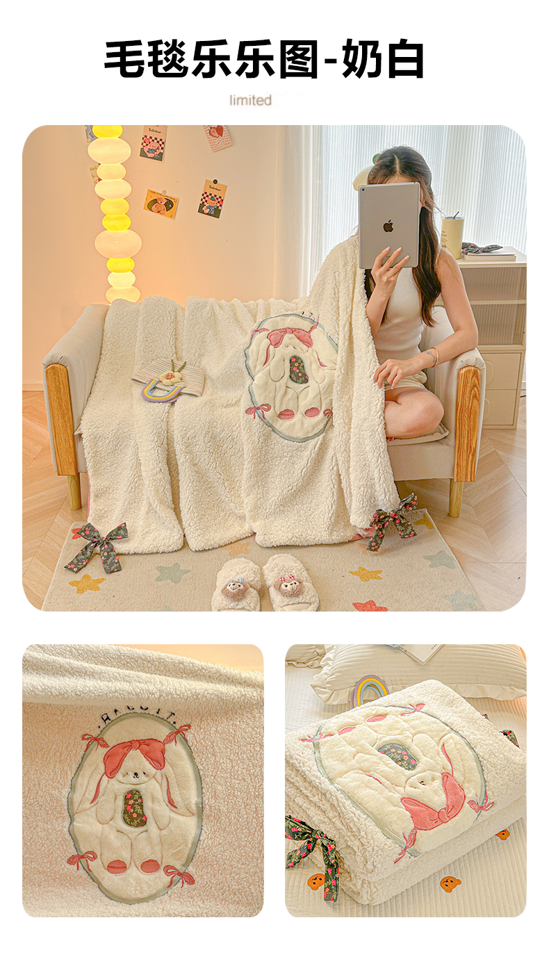商品名称:(总)子钦家纺 2025新款加厚羊羔绒牛奶绒卡通贴布绣多功能毛毯