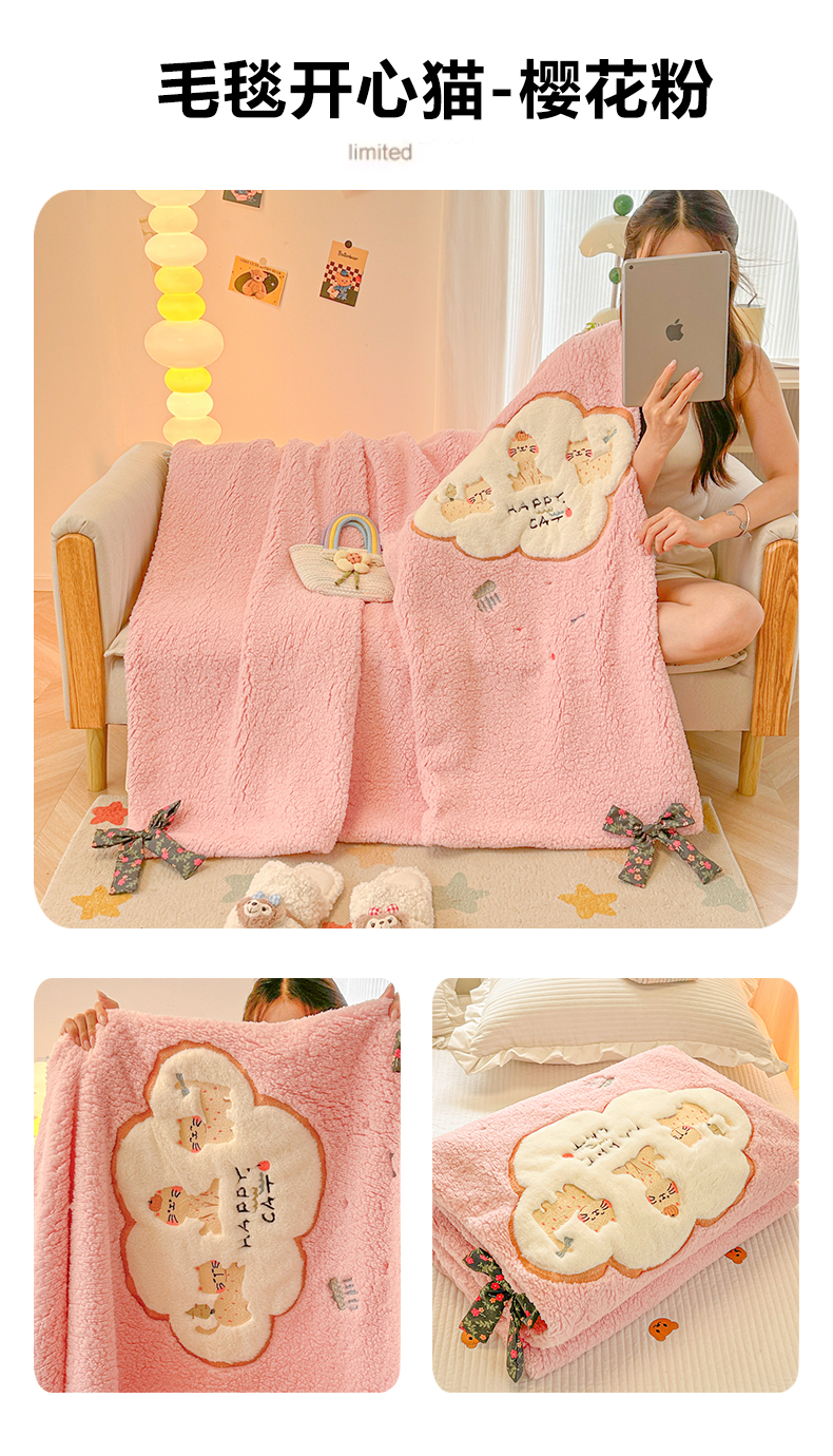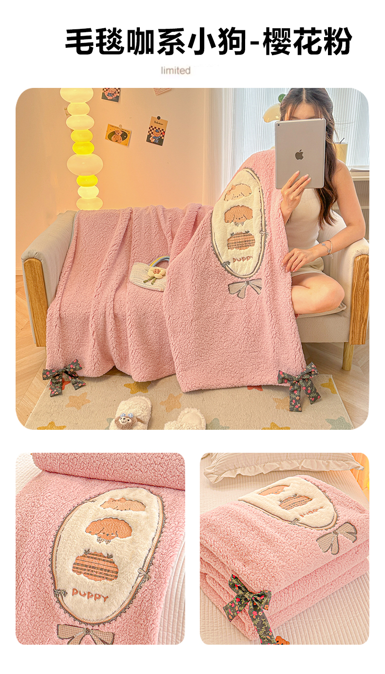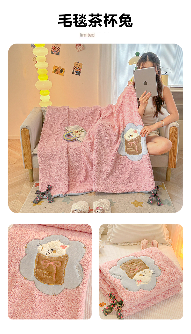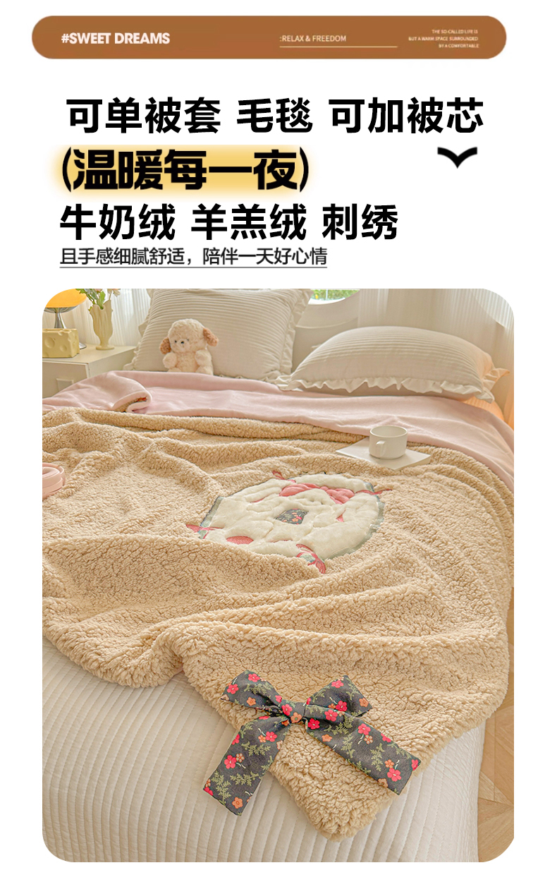 (总)子钦家纺 2025新款加厚羊羔绒牛奶绒卡通贴布绣多功能毛毯