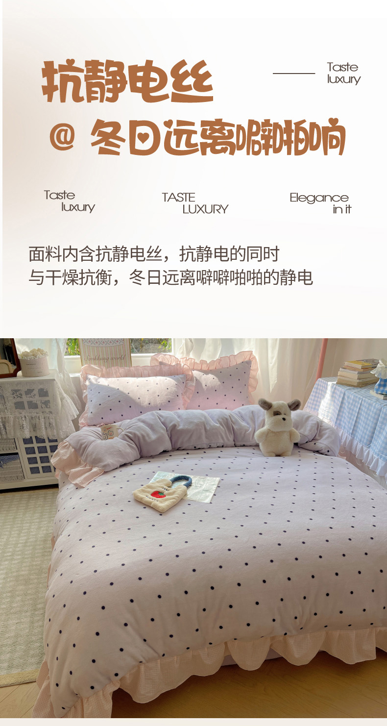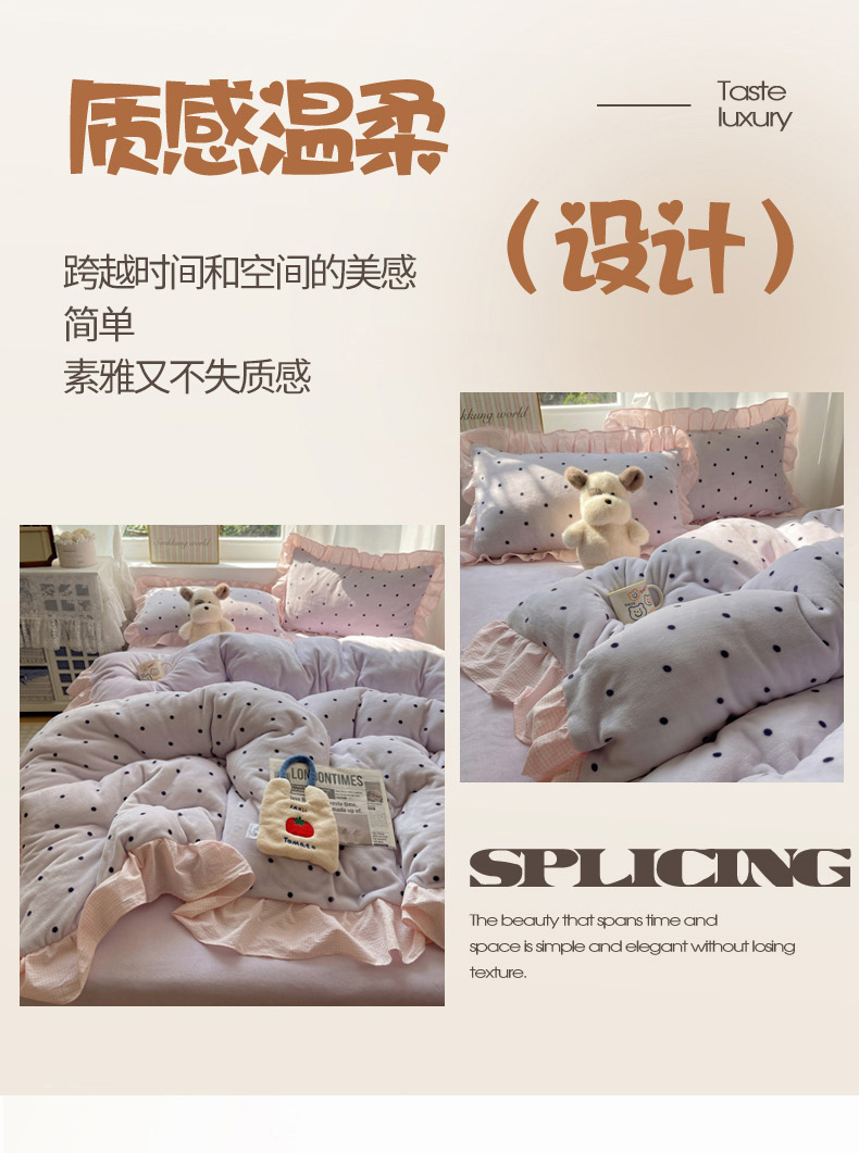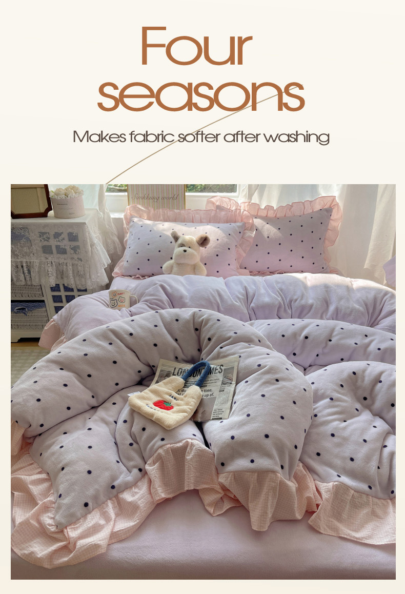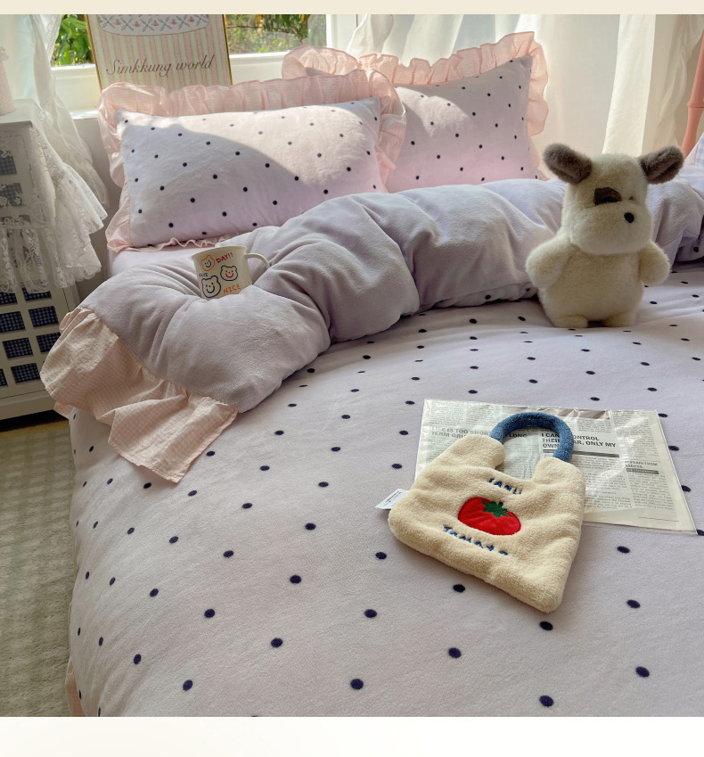 当前位置: 91家纺网 > 商品网购 > 床品套件 > 四件套 > 牛奶绒四件套 > 丽涵家纺 2025秋冬新品韩系牛奶绒波点小格子花边四件套 奶油波点-香芋紫