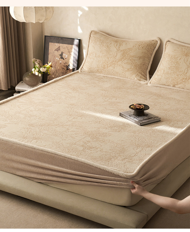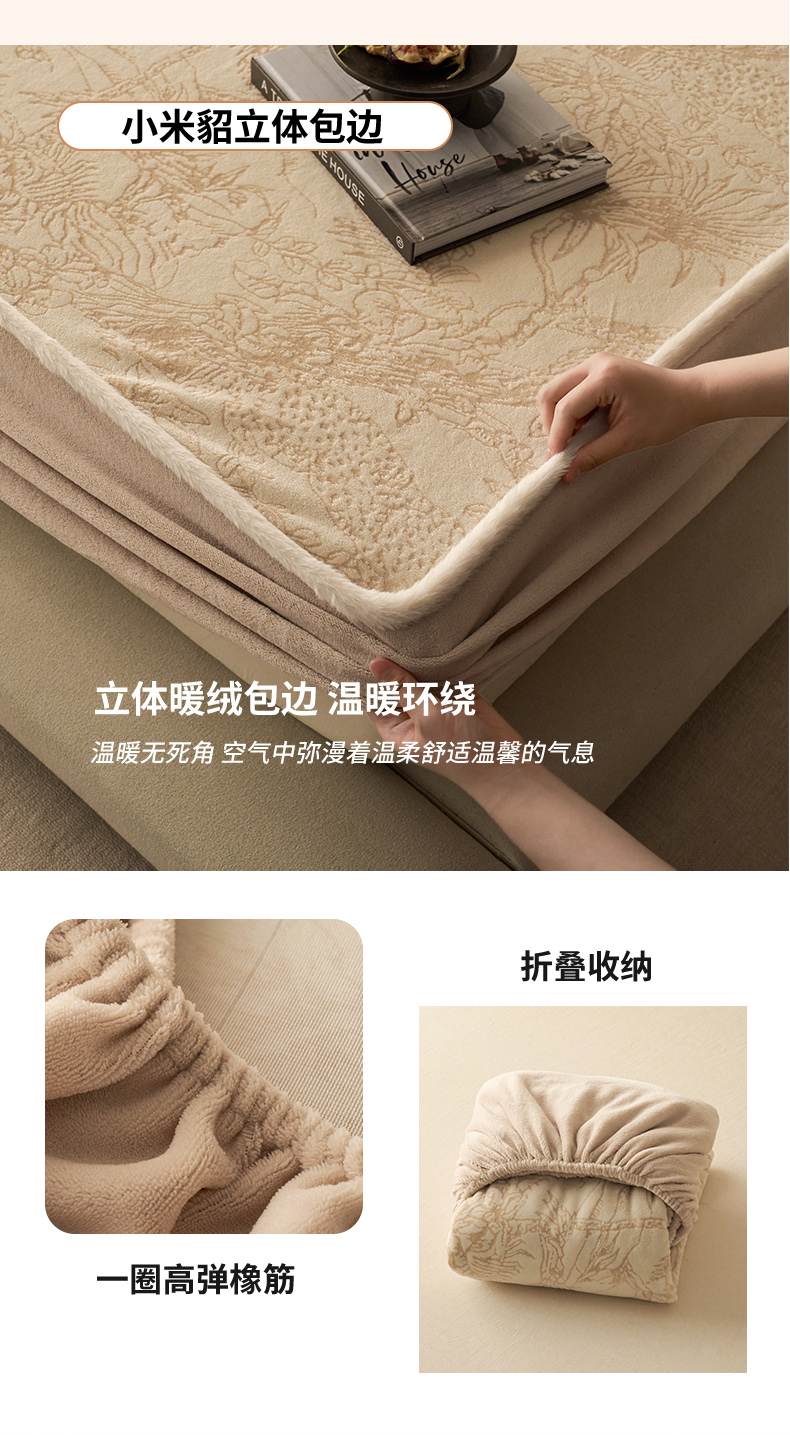 商品名称:宜代光年 2025新款A类小米貂复古牛奶绒染色雕花单床笠 静若繁花-粉