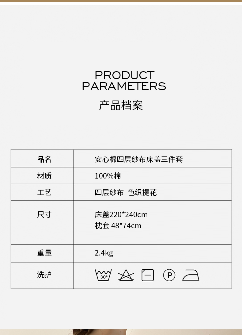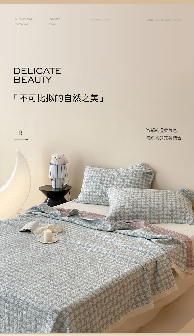 商品名称:麻依 2025新款安心棉四层纱布床盖三件套 伊慕