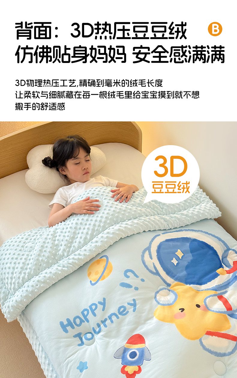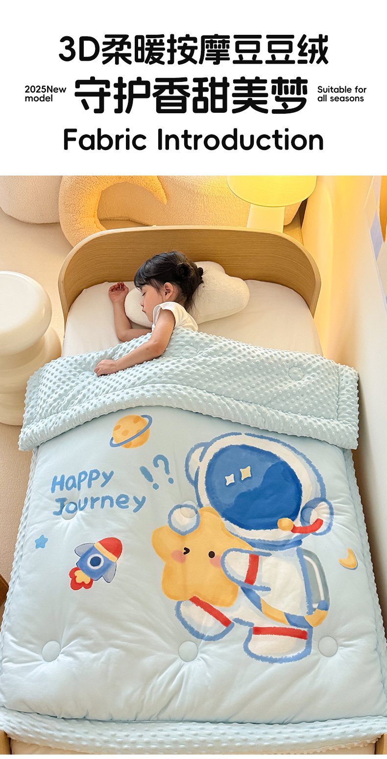 (总)嗨生活 2025新款3D触感全棉豆豆被儿童豆豆被春秋被冬被幼儿园一体款被子,安妮兔,宝宝巴士,彩色童趣,动物园,恐龙聚会,萌宠恐龙,奶味小兔,汽车滴滴,童话乐园,小恐龙,银河之旅,宇航漫步