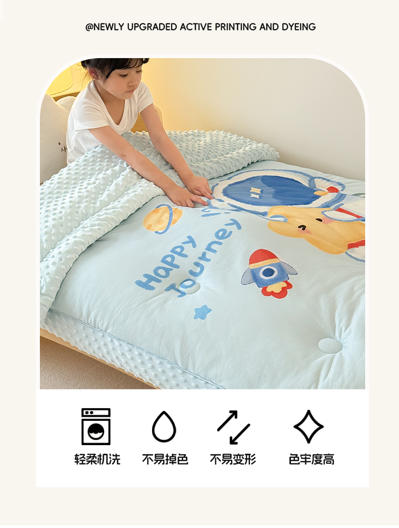 (总)嗨生活 2025新款牛奶绒儿童被幼儿园冬被春秋被,飞机恐龙,乖乖兔,皇冠恐龙,卡通小恐龙,可爱狮子,可爱小兔,快乐熊猫,快乐宇航熊,萌萌汽车,暖羊羊,挖掘机,消防警车,幸运猫,幸运女孩