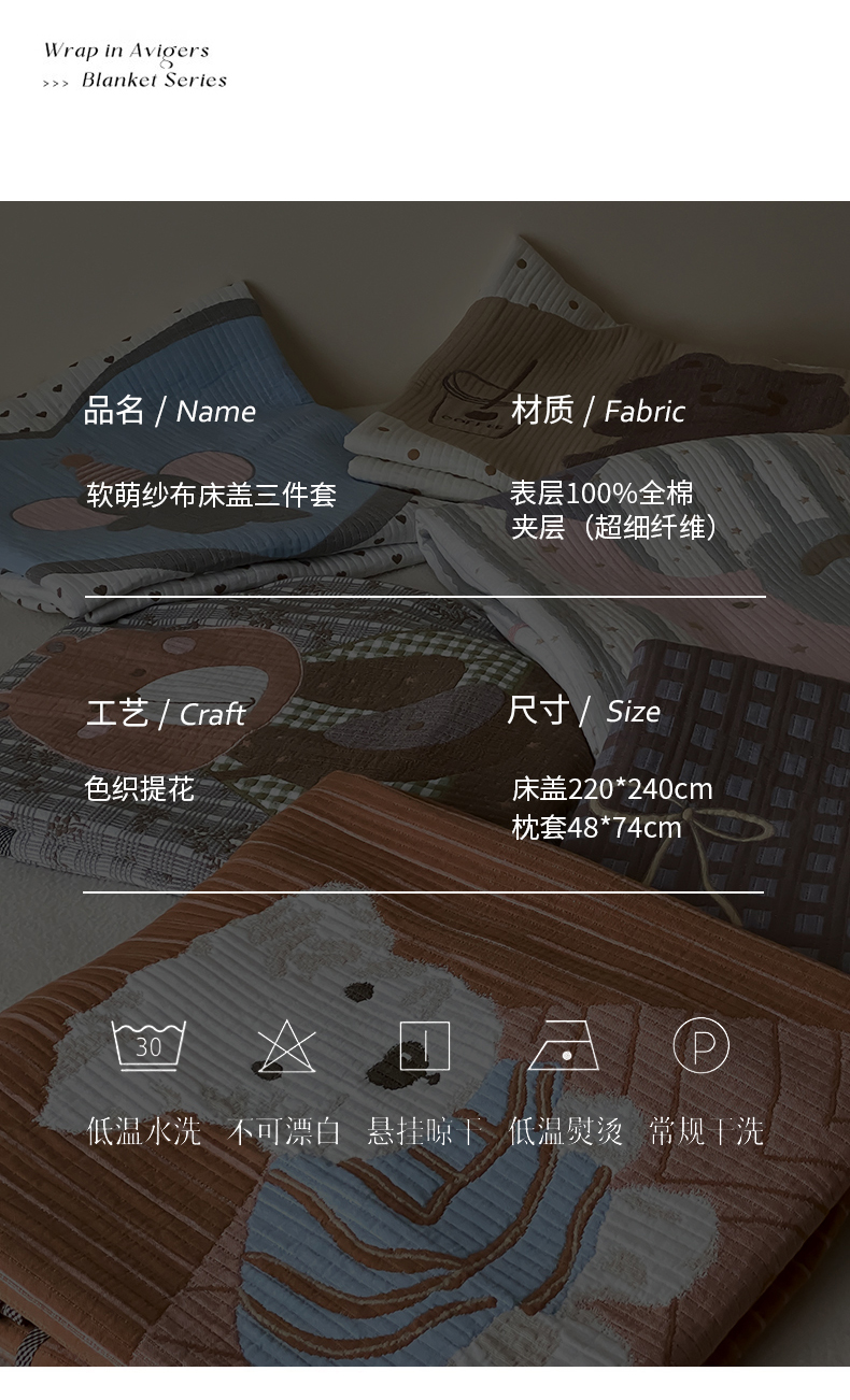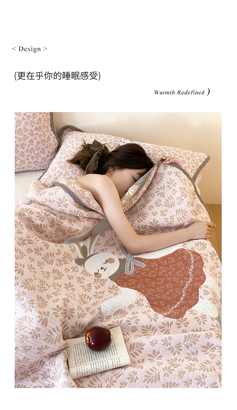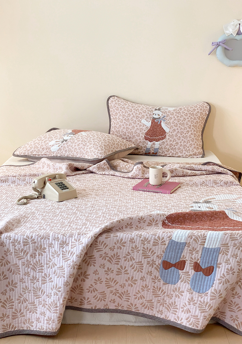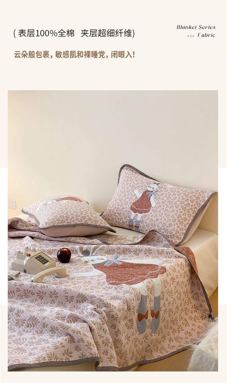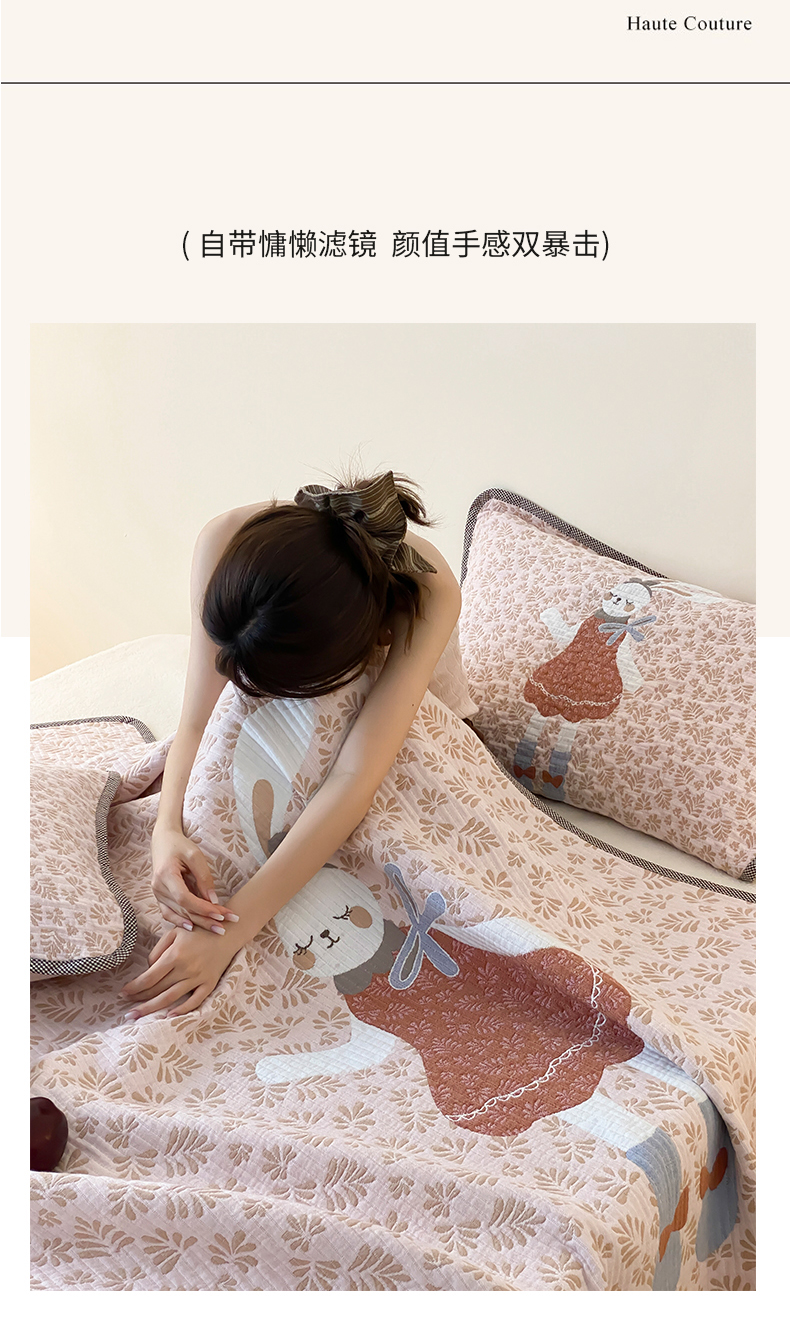 商品名称:麻依 2025新款软萌纱布床盖三件套(控价:229元) 许愿小兔