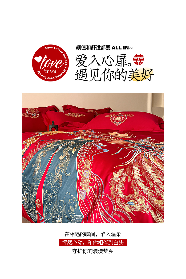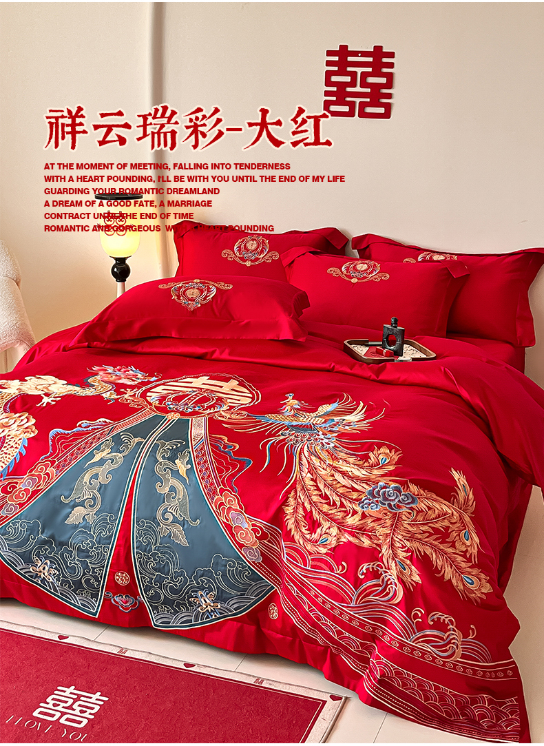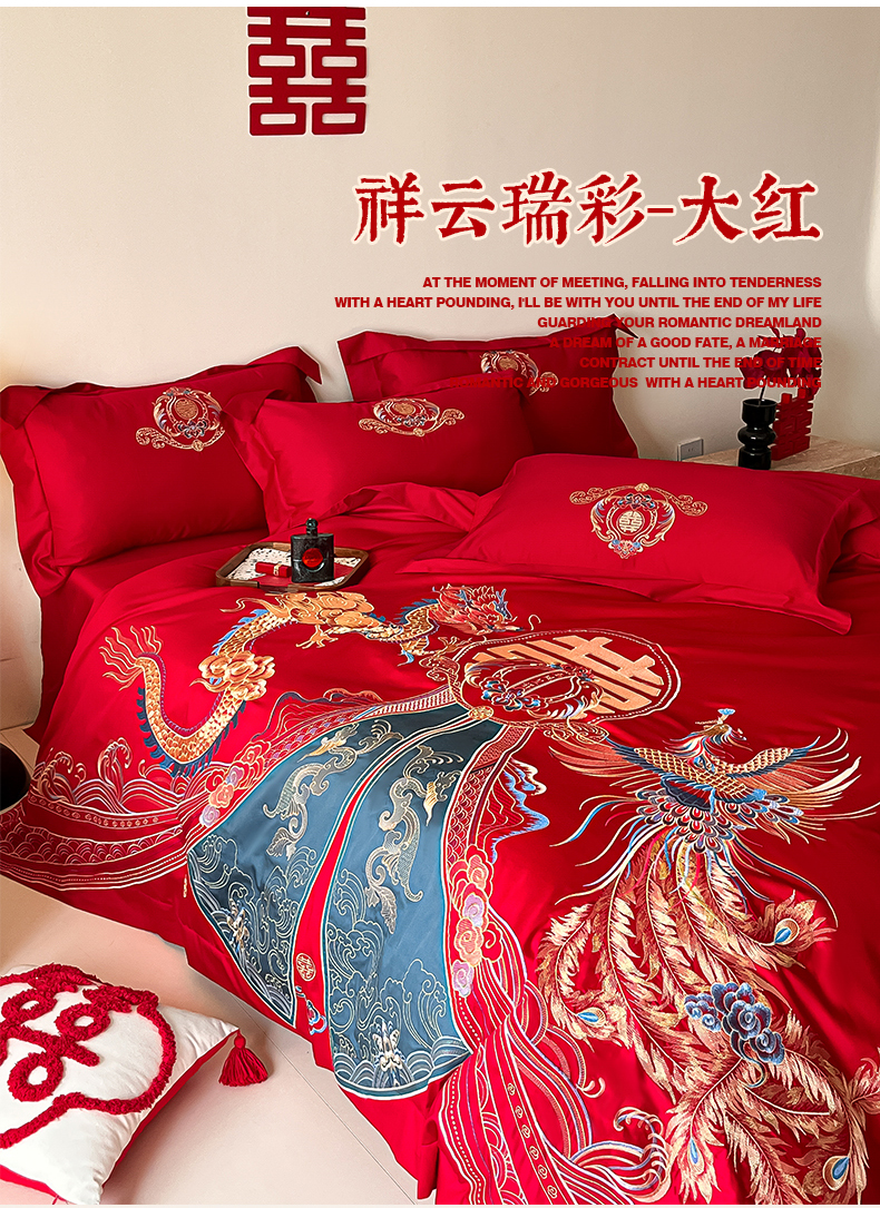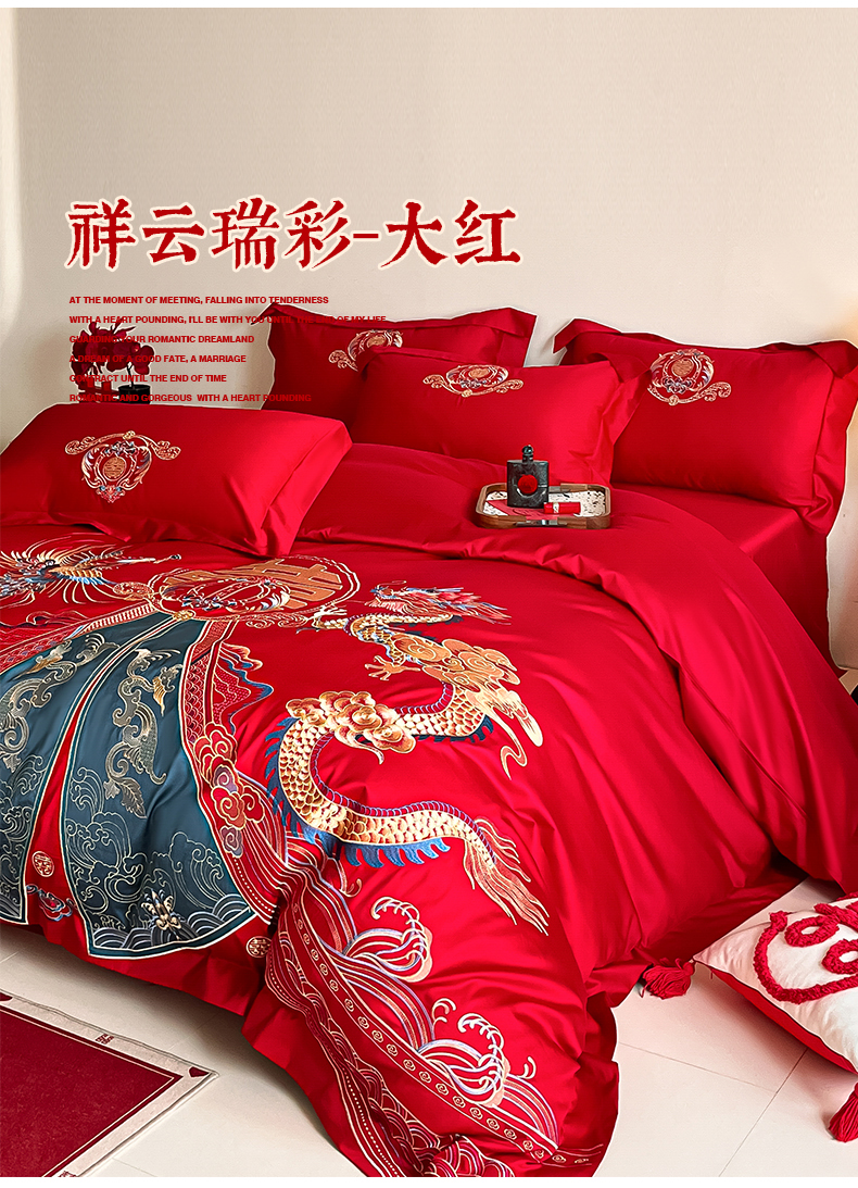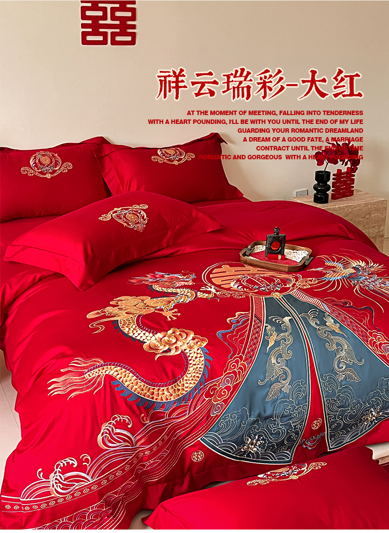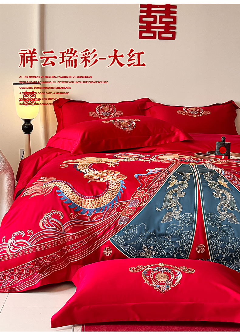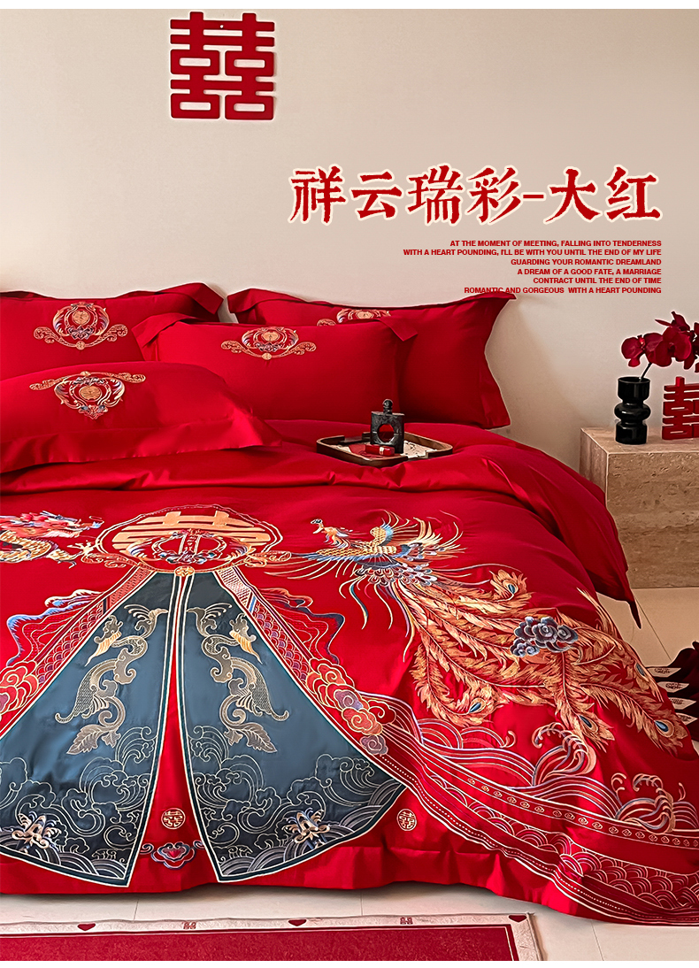 当前位置: 91家纺网 > 商品网购 > 床品套件 > 四件套 > 婚庆四件套 > 置顶家纺 2025新款亲肤磨毛刺绣婚庆四件套系列-实拍 祥云瑞彩-大红