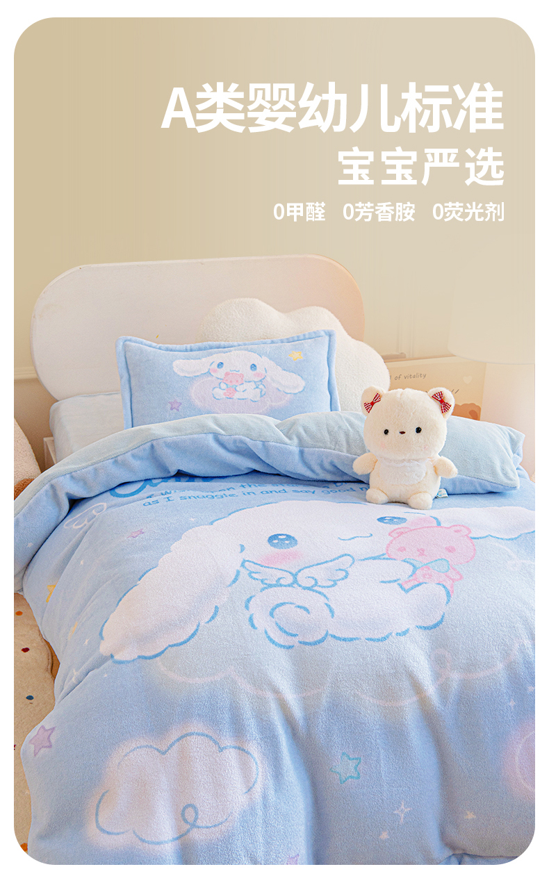 当前位置: 91家纺网 > 商品网购 > 床品套件 > 四件套 > 牛奶绒四件套 > 吉咪兔家纺 2025新款大版三丽鸥库洛米美乐蒂牛奶绒幼儿园被子三件套保暖被褥六件套 云朵玉桂狗