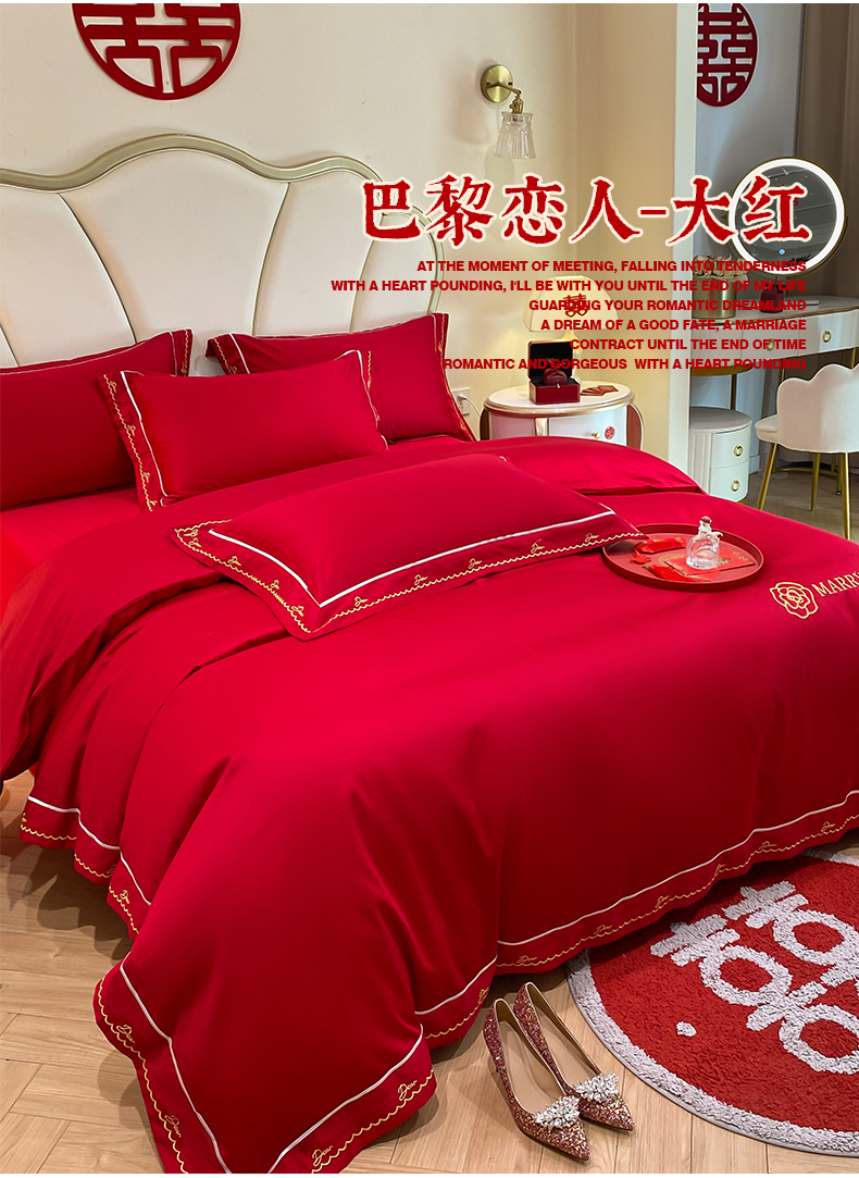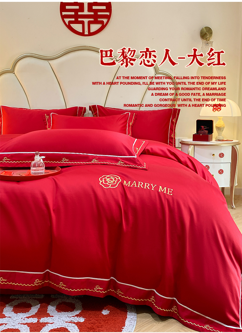 当前位置: 91家纺网 > 商品网购 > 床品套件 > 四件套 > 婚庆四件套 > 置顶家纺 2025新款亲肤磨毛刺绣婚庆四件套系列-棚拍 巴黎恋人-大红