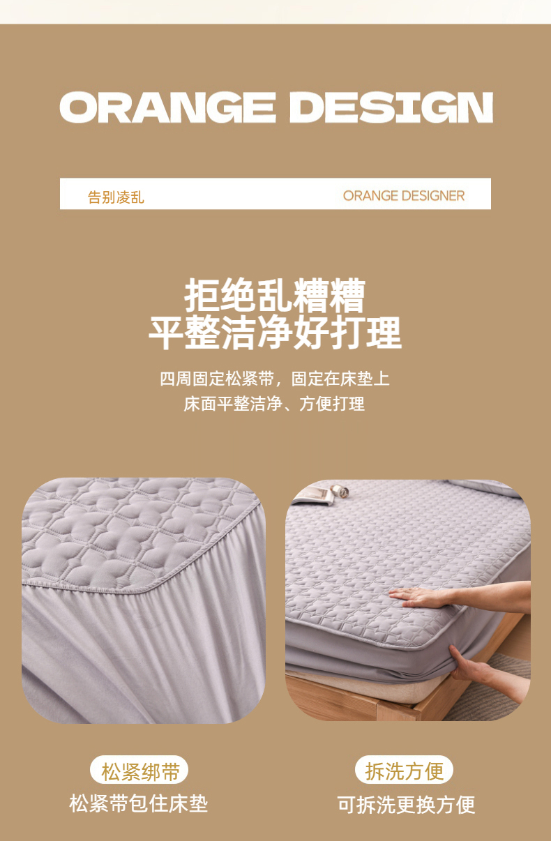 • 91家纺网 家纺一手货源 找家纺 小萌虎 2025新款防水夹棉单品床笠-星愿 星愿-灰