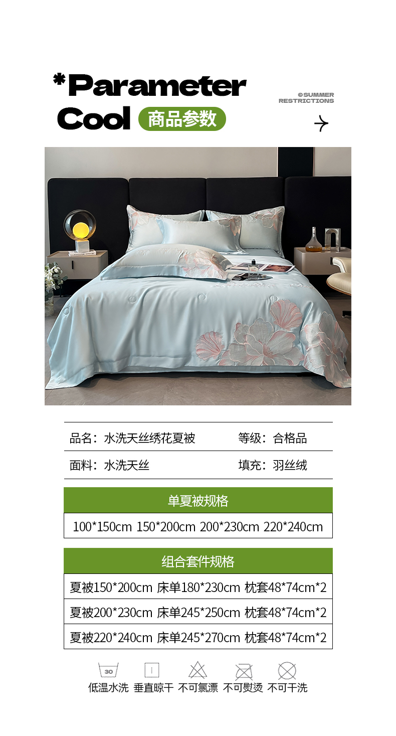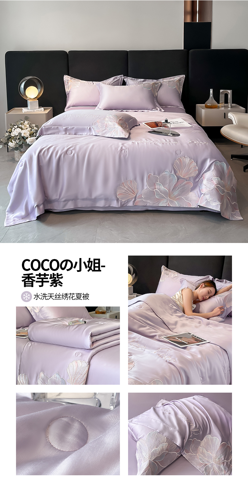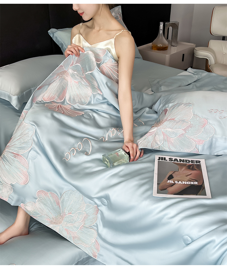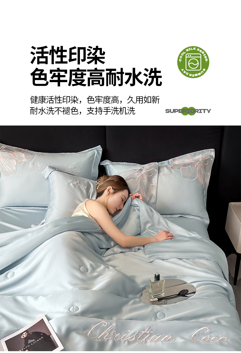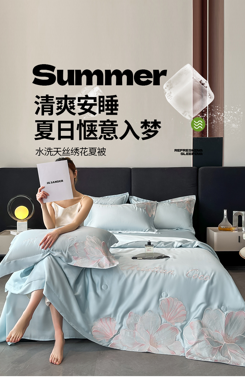 当前位置: 91家纺网 > 商品网购 > 床品套件 > 四件套 > 夏被四件套 > 置顶家纺 2025新款水洗天丝夏被四件套-coco小姐 COCO小姐-浅蓝