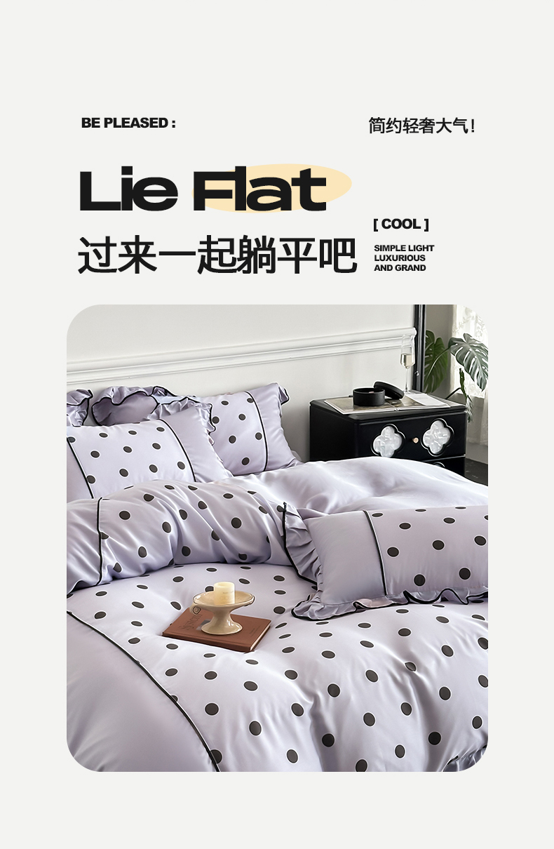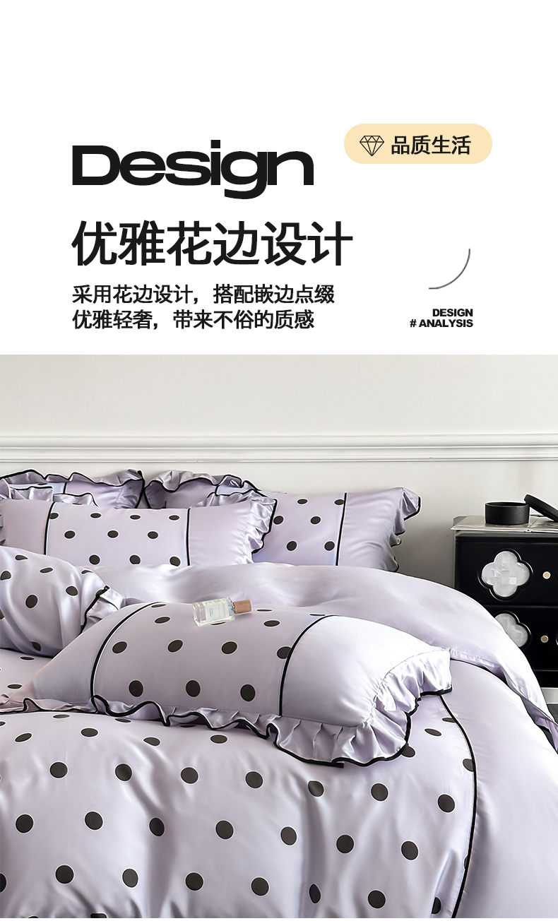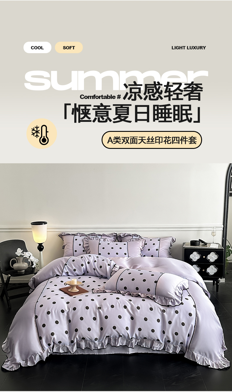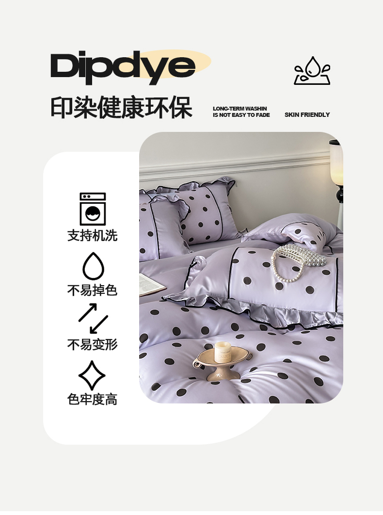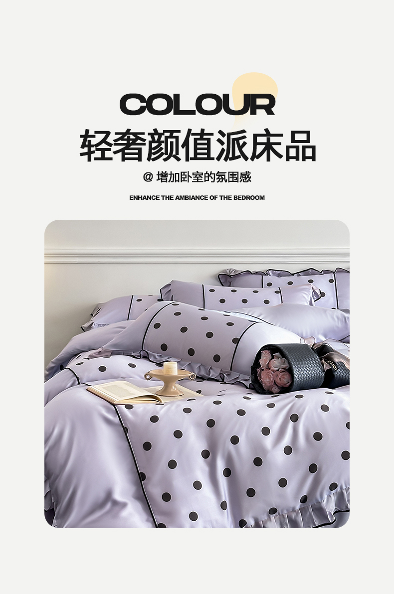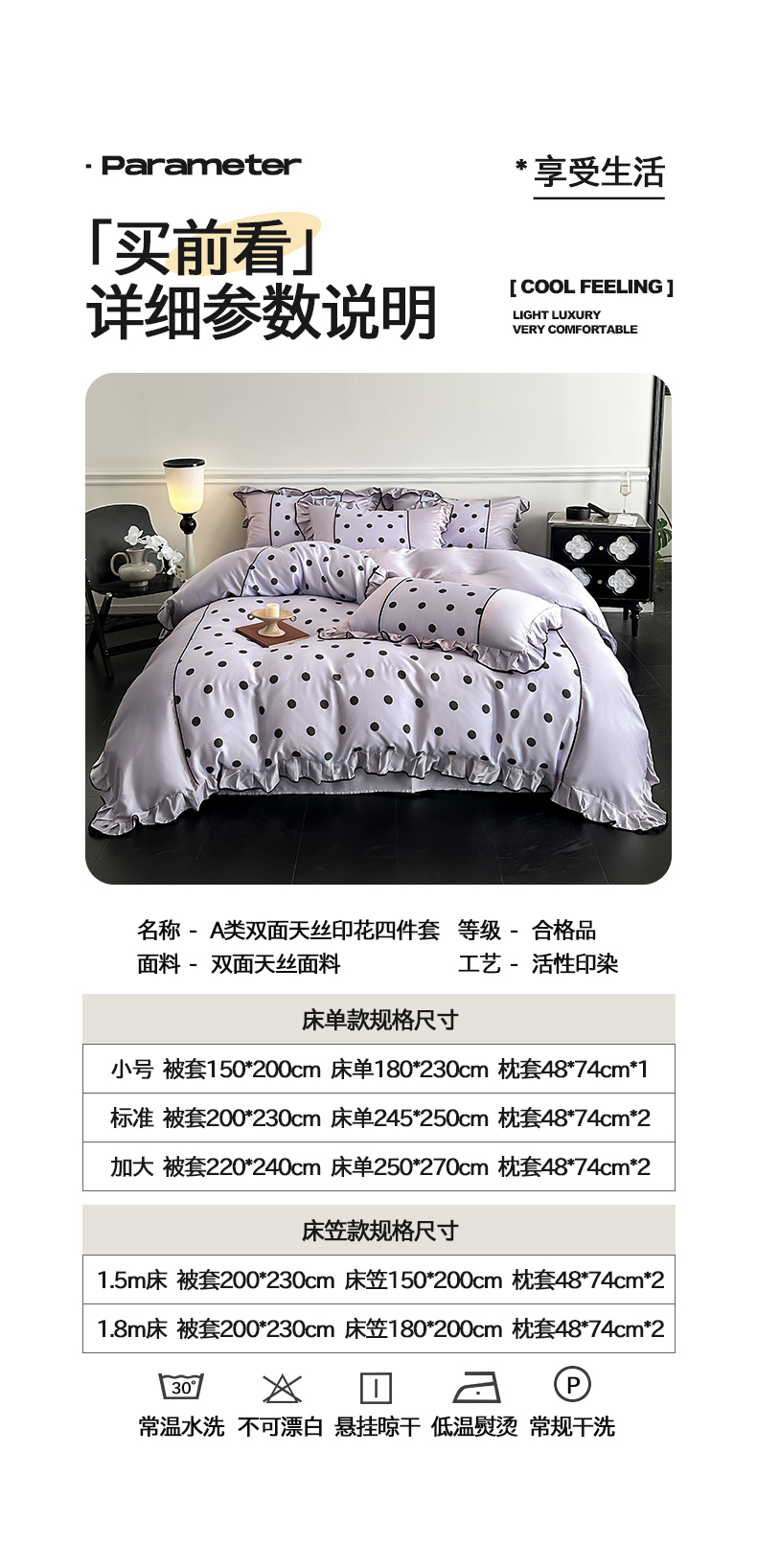 当前位置: 91家纺网 > 商品网购 > 床品套件 > 四件套 > 水洗棉四件套 > 置顶家纺 2025新款波点双面水洗天丝四件套 波点-香芋紫
