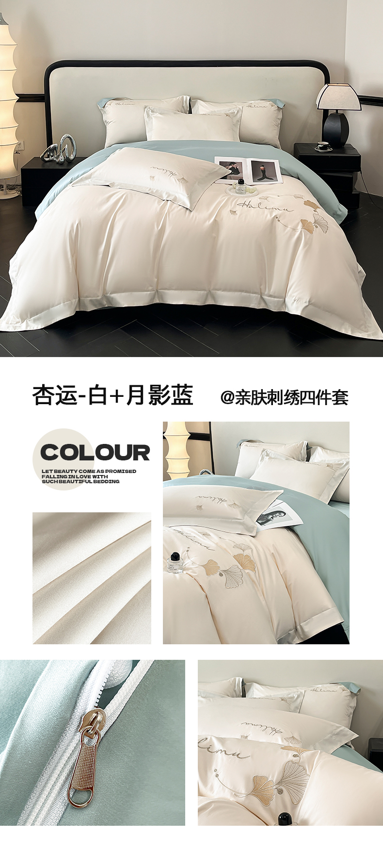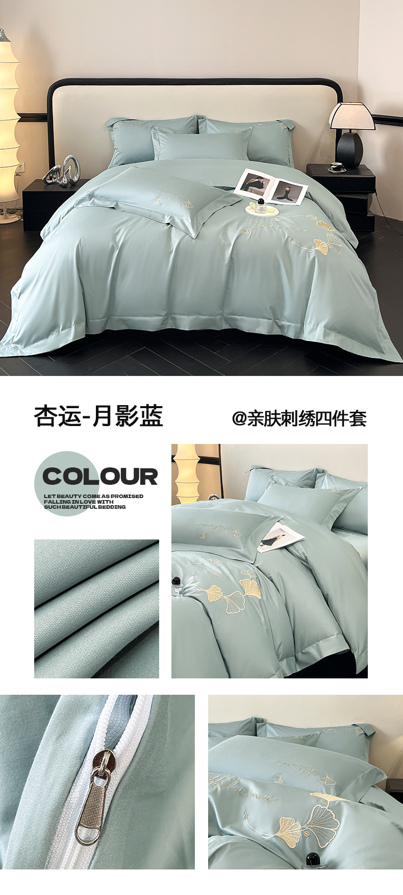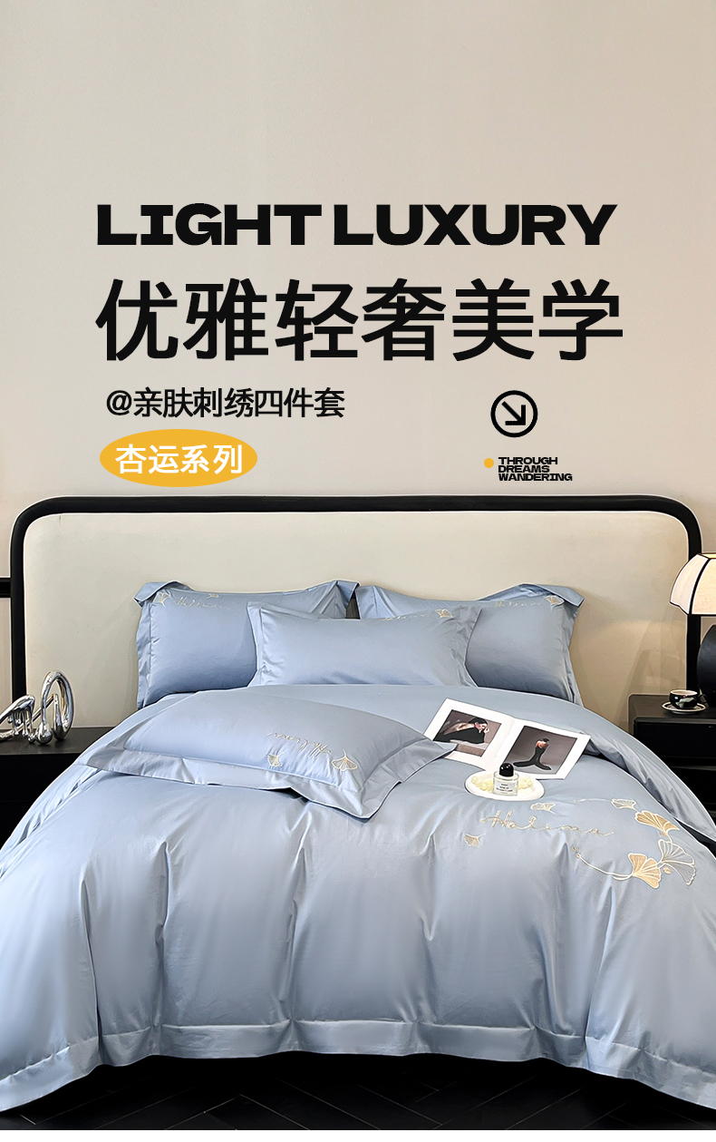 当前位置: 91家纺网 > 商品网购 > 床品套件 > 四件套 > 全棉普通四件套 > 置顶家纺 2025新款亲肤刺绣四件套-杏运 杏运-天蓝