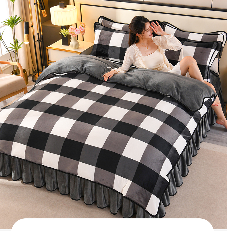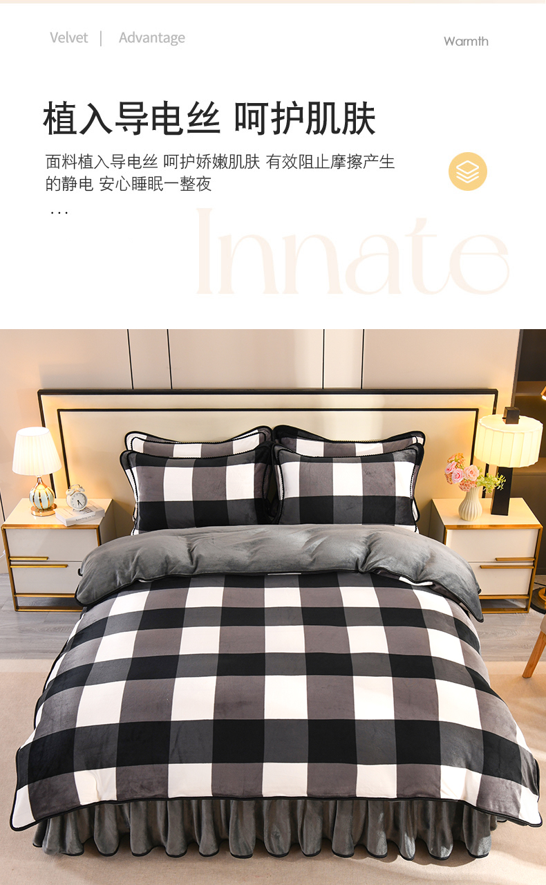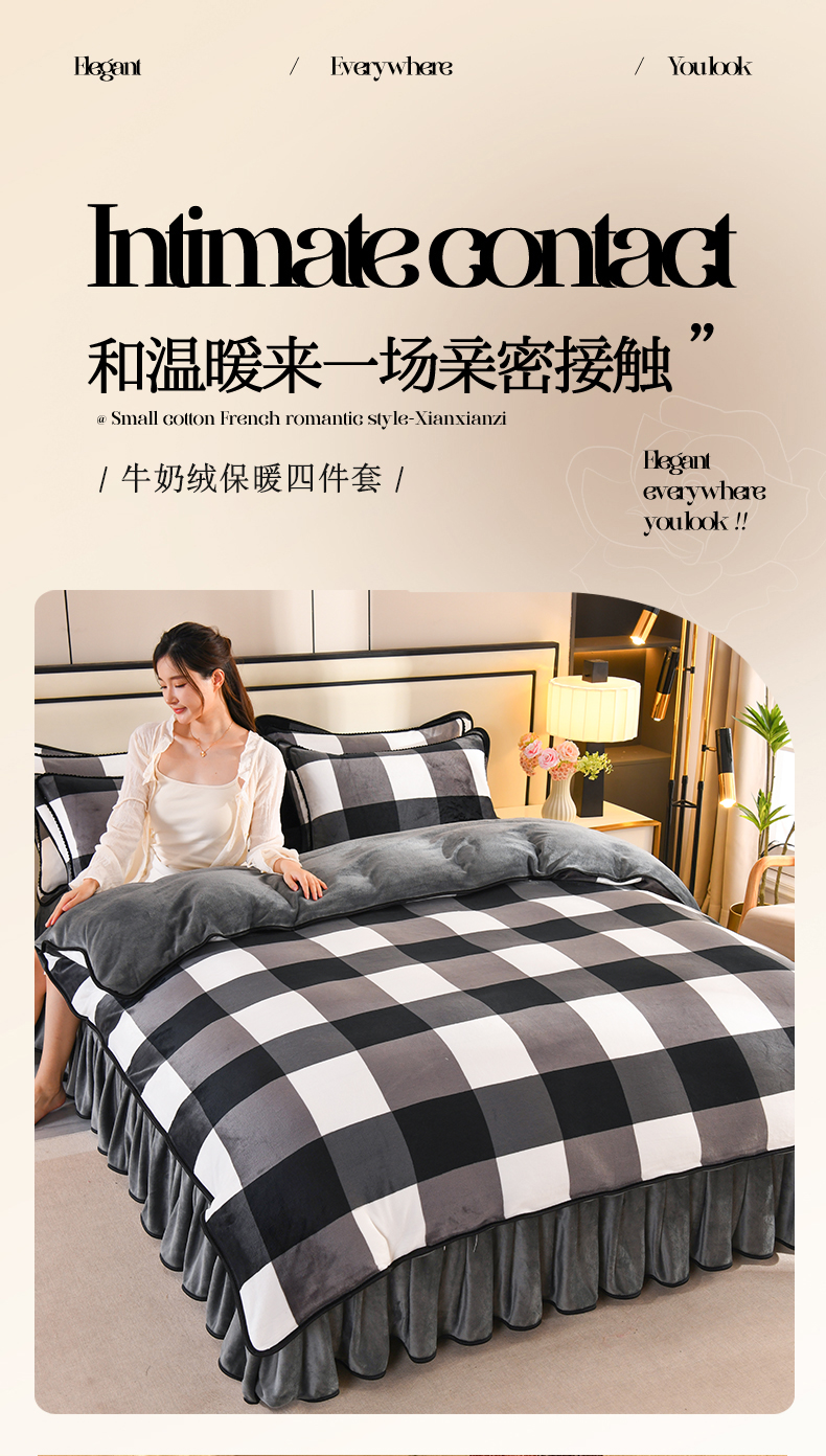 商品名称:2025新款高克重8斤金貂绒牛奶绒四件套 大格-黑