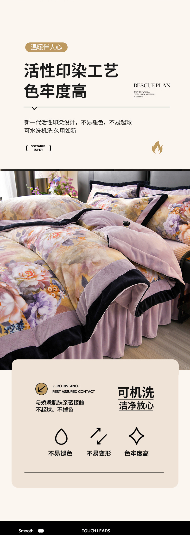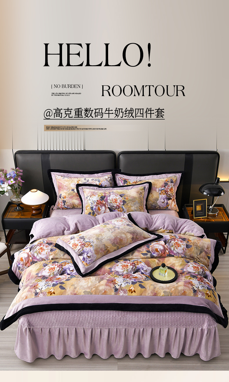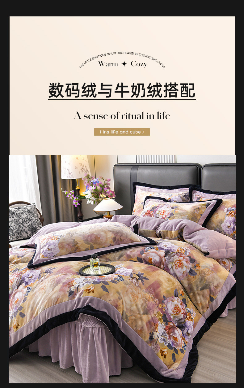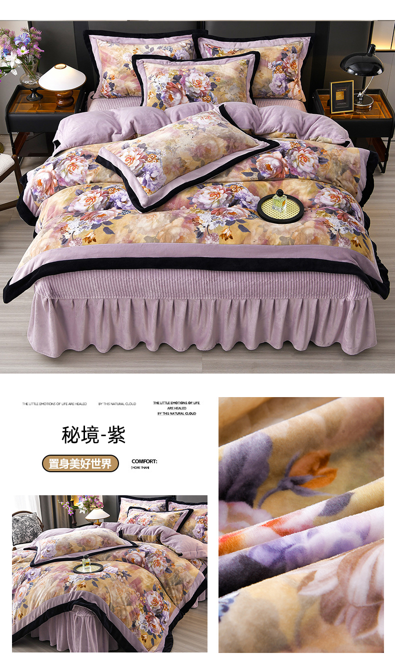 当前位置: 91家纺网 > 商品网购 > 床品套件 > 四件套 > 牛奶绒四件套 > 馨梦缘 2025新款牛奶绒数码印花四件套 秘境-紫