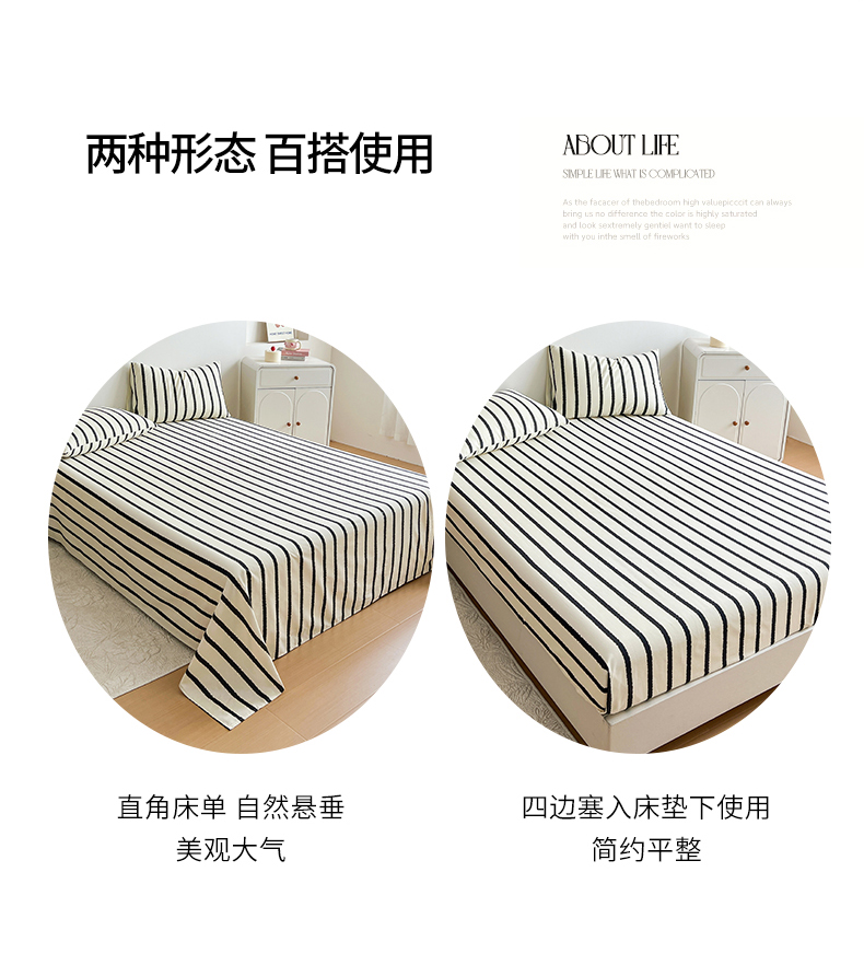 当前位置: 91家纺网 > 商品网购 > 床品套件 > 三件套 > 感遇 2025新款全棉磨毛A类床单床笠三件套 黑条纹