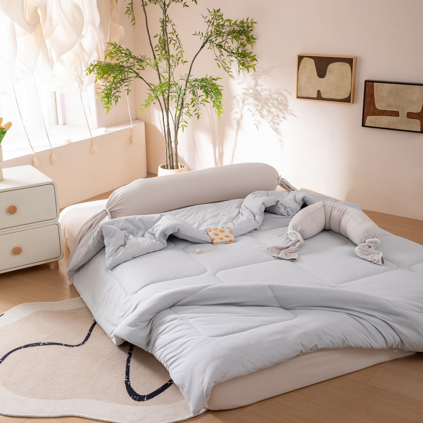(总)LADYCOCO可可家居 2025新款三开口贡缎夹棉四件套 优易套/U易套 三开口被套,唯一专利发明单位,全球专利布局(控价不低于410元),浅粉+浅灰,浅紫+浅灰,浅灰+卡其