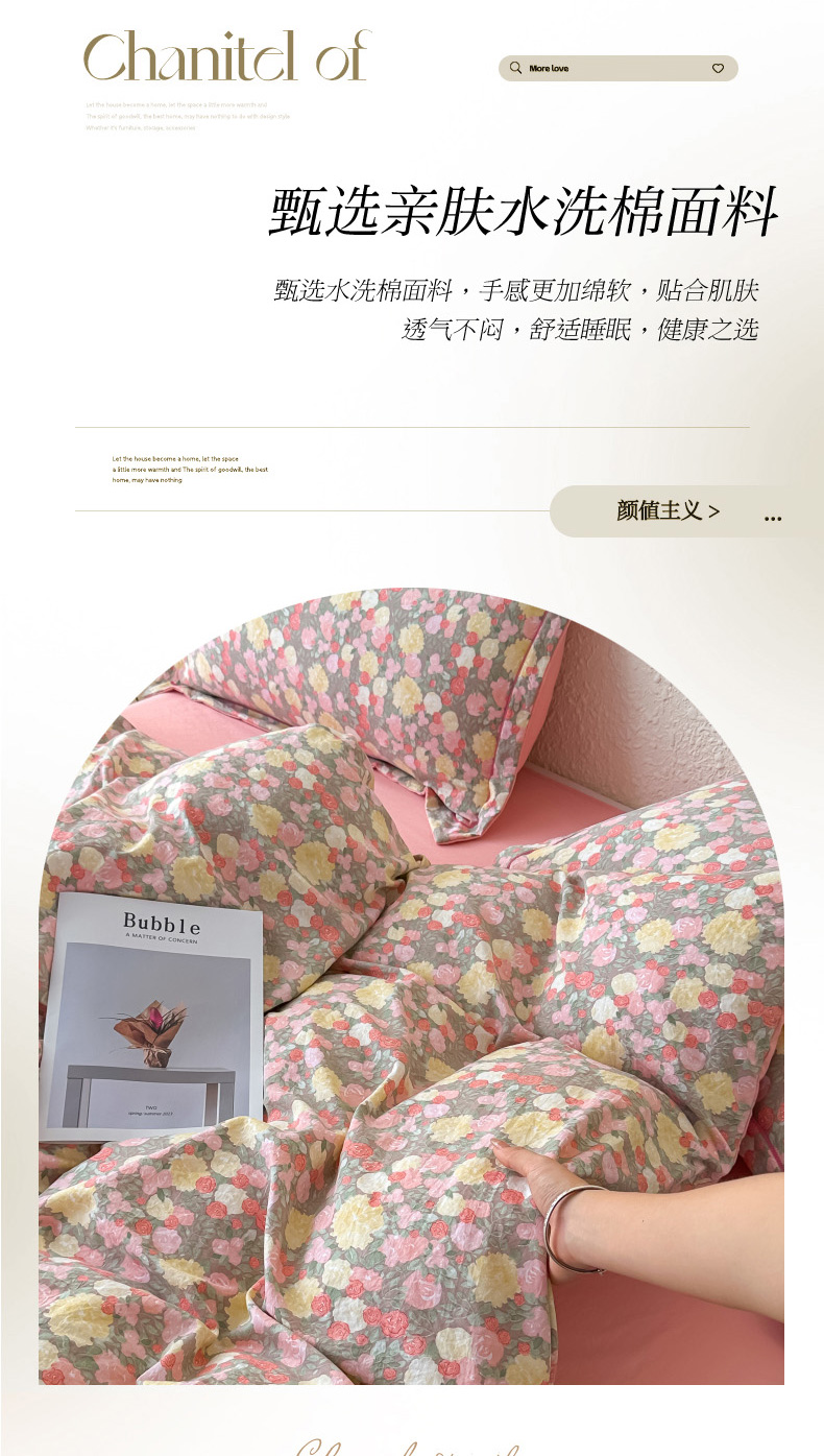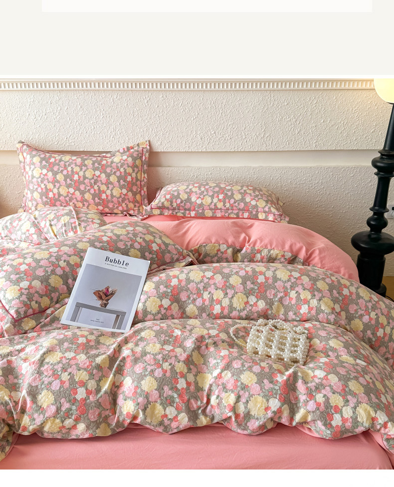 (总)可思家纺2025新款云感木棉皱皱纱四件套,安娜,薄雾花海,贝拉,春日小花,蝶舞翩翩,格调粉,格调兰,海韵蓝调,花开半夏,花田梦语,兰亭雅叙,浪漫花季,满庭芳,漫步茶卡,梦华录,奶油格子,群芳艳,少女日记,时光漫境,拾光悠悠,水中仙紫,甜茶,小花集,小美好,熊熊假日,叶语