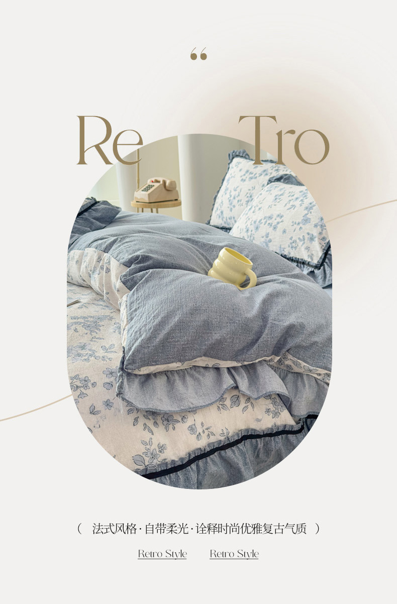 可思家纺 2025新款亚麻四件套-赫本风系列 赫本风-蓝