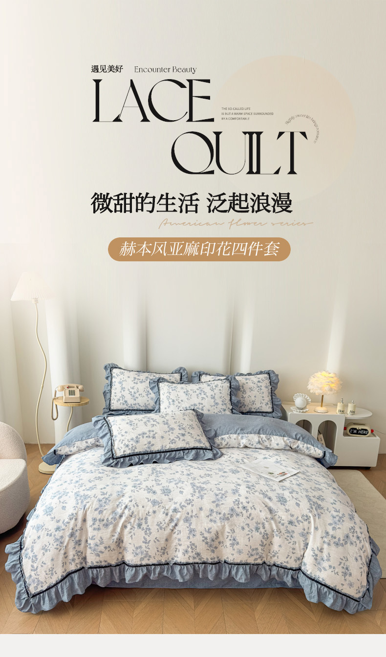 商品名称:可思家纺 2025新款亚麻四件套-赫本风系列 赫本风-蓝