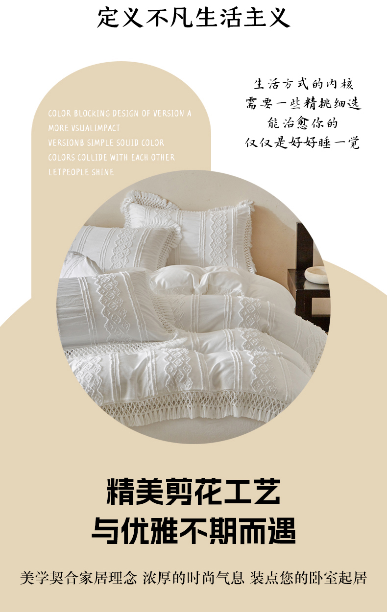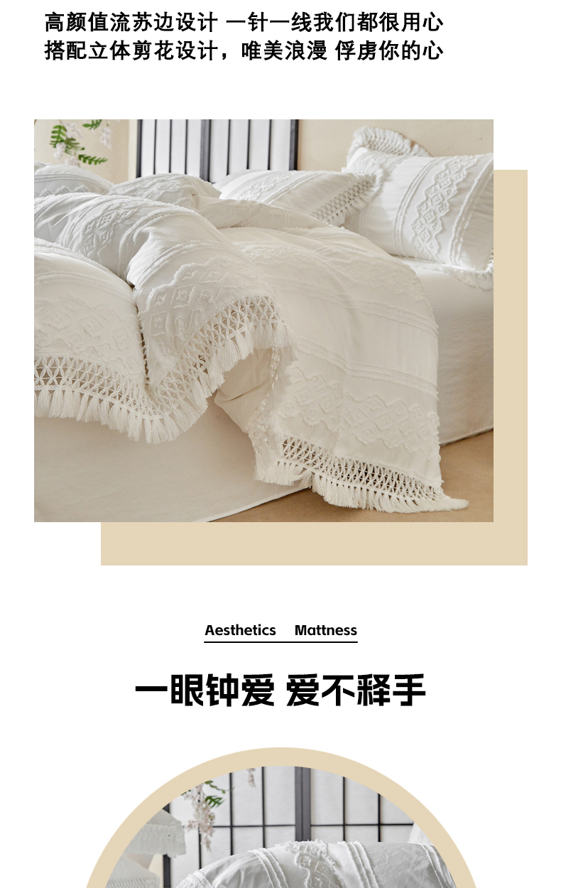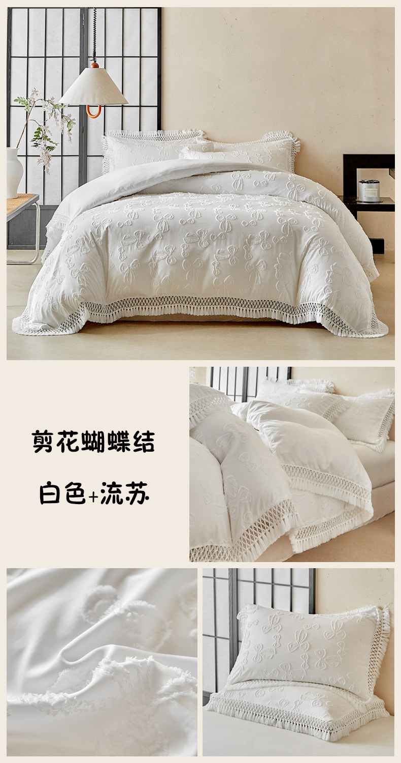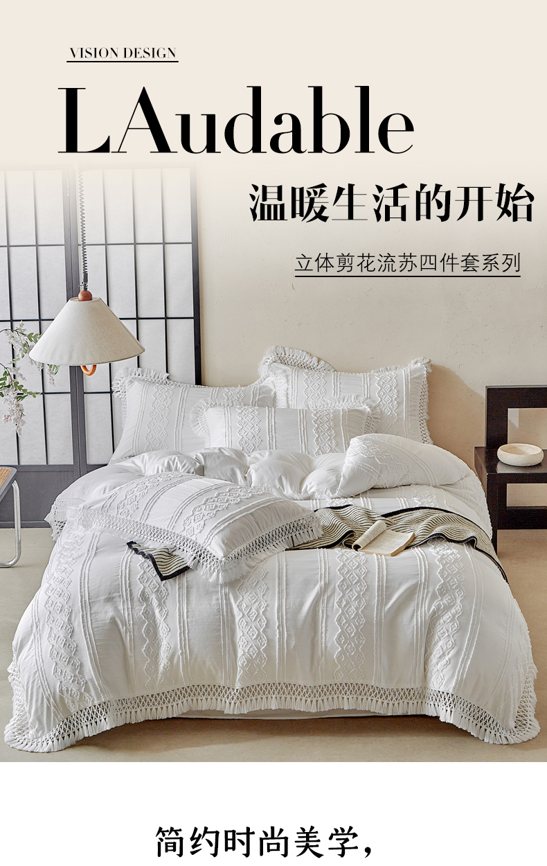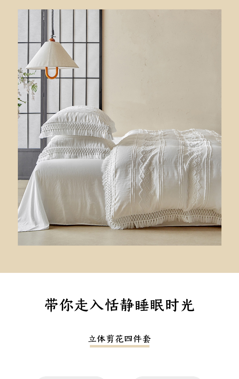 当前位置: 91家纺网 > 商品网购 > 床品套件 > 四件套 > 其它四件套 > 缘生活 2025新款立体剪花流苏四件套 四季通用-新增花型 剪花巴洛克 流苏+白色