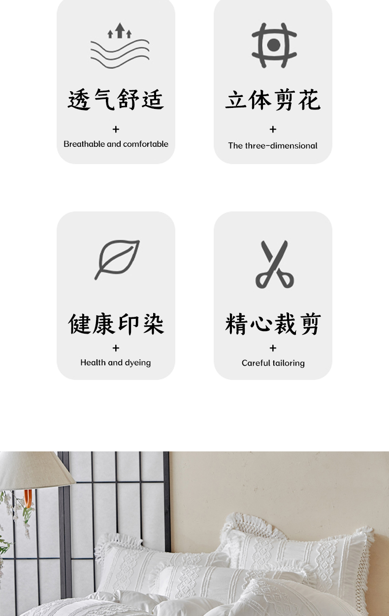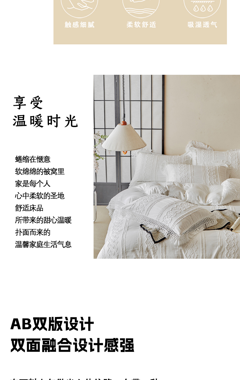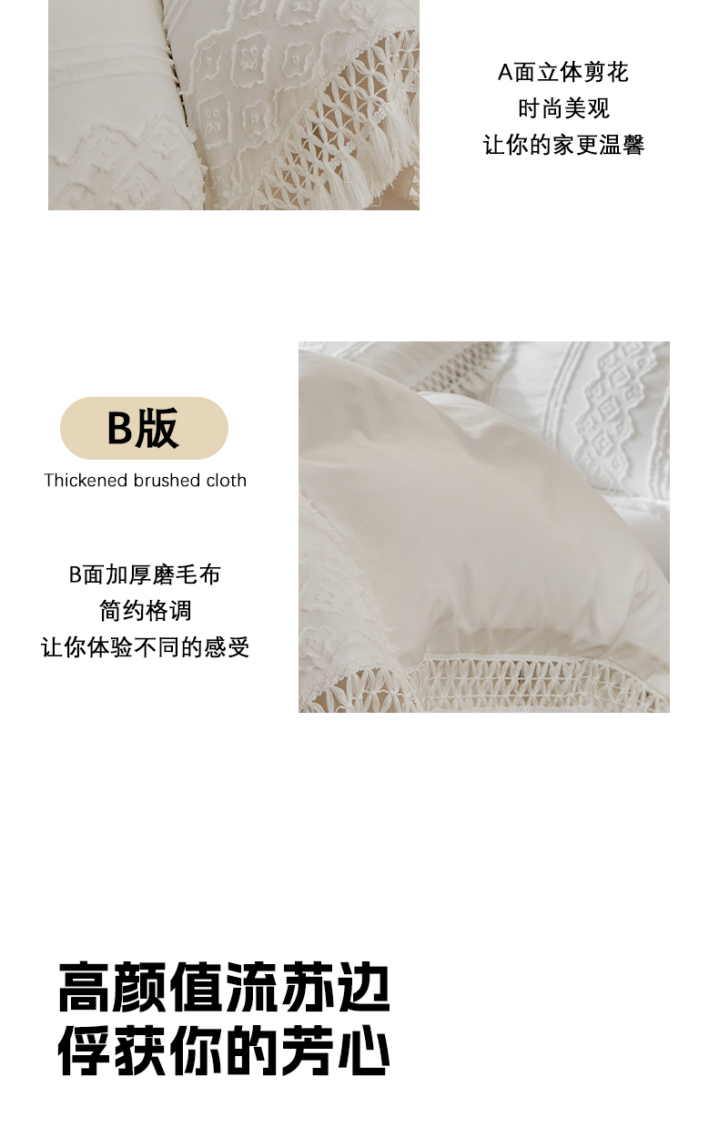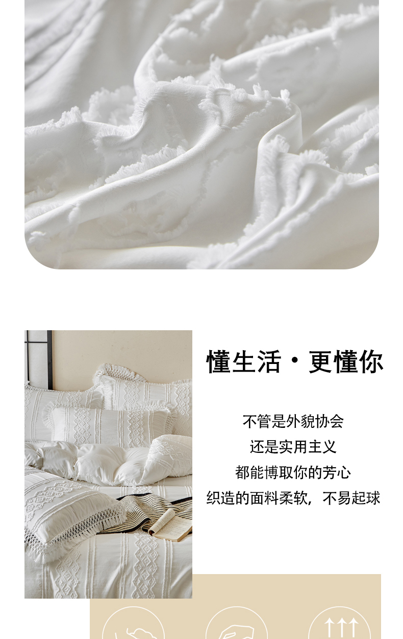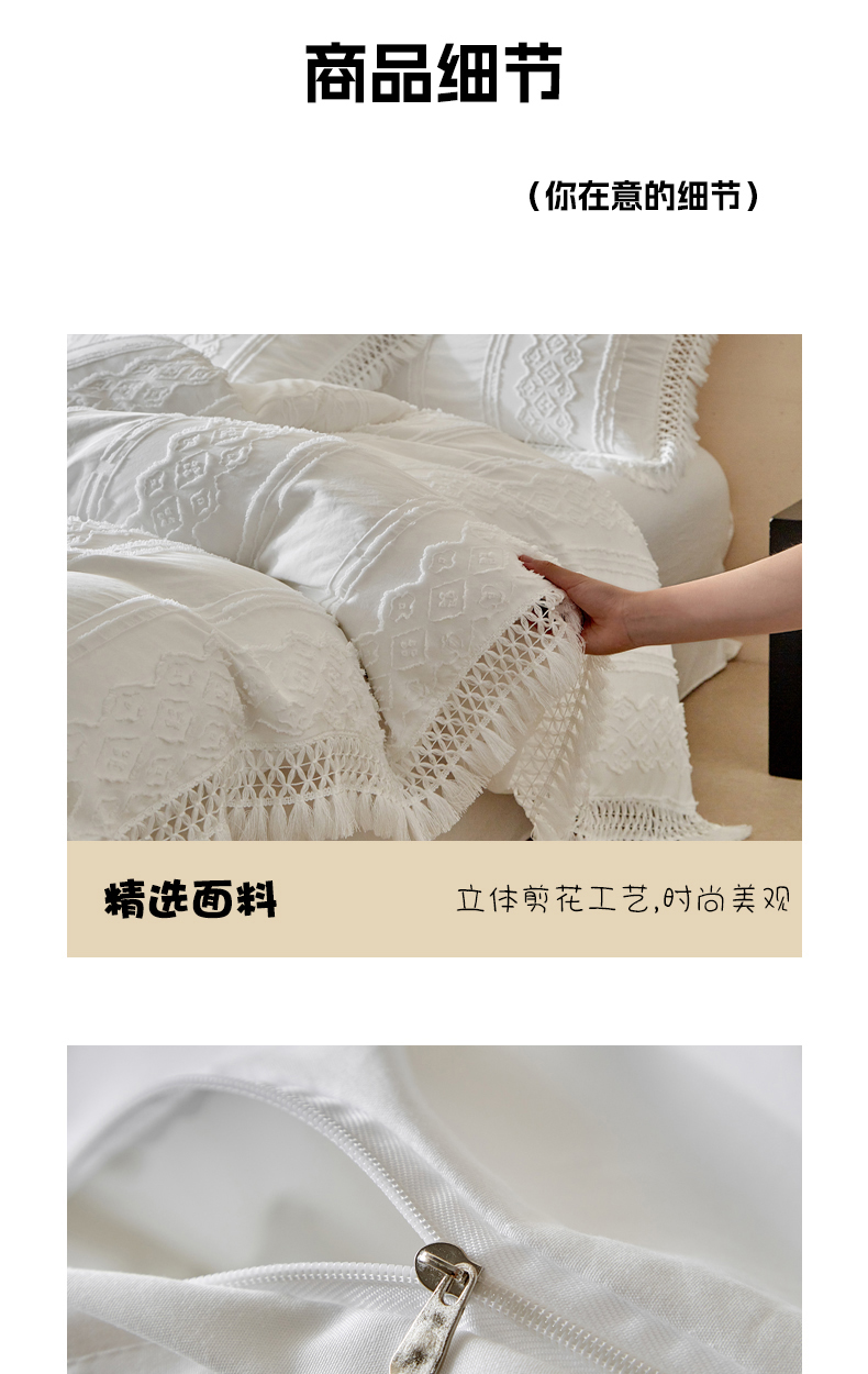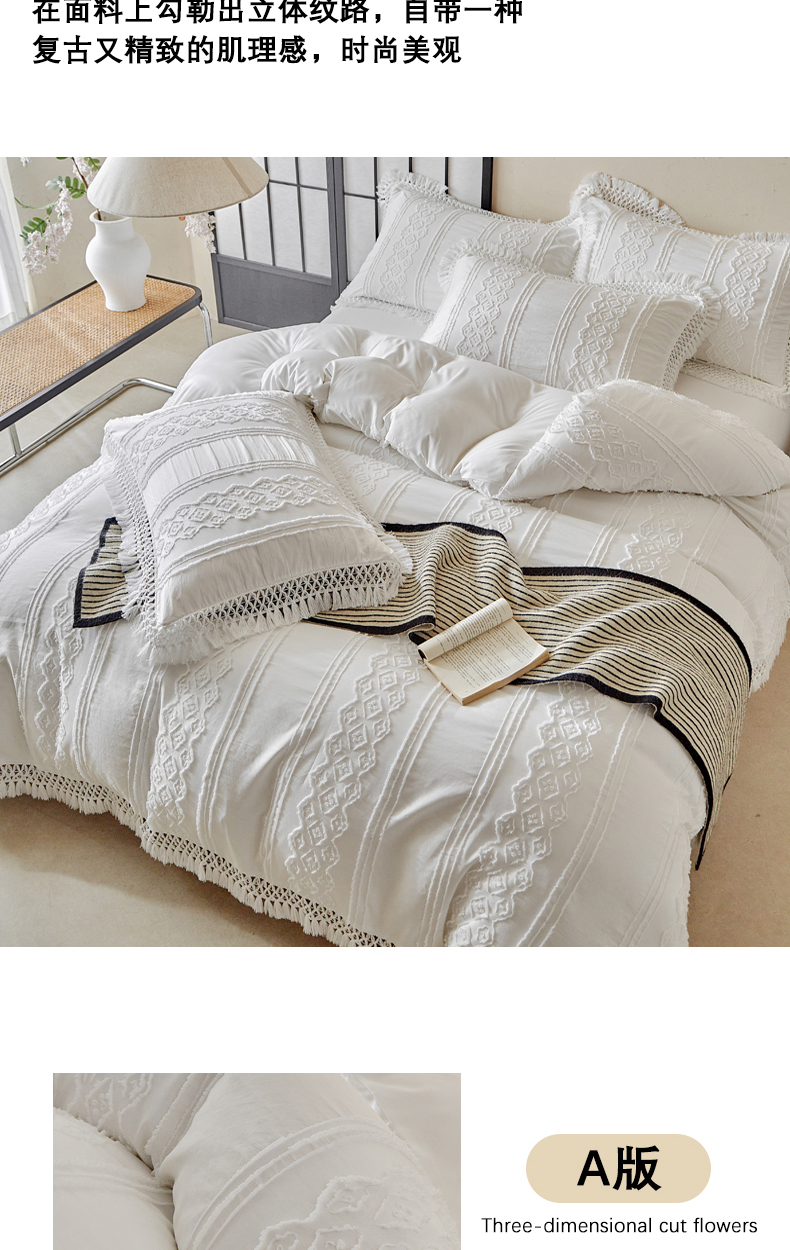 当前位置: 91家纺网 > 商品网购 > 床品套件 > 四件套 > 其它四件套 > 缘生活 2025新款立体剪花流苏四件套 四季通用-新增花型 剪花巴洛克 流苏+白色
