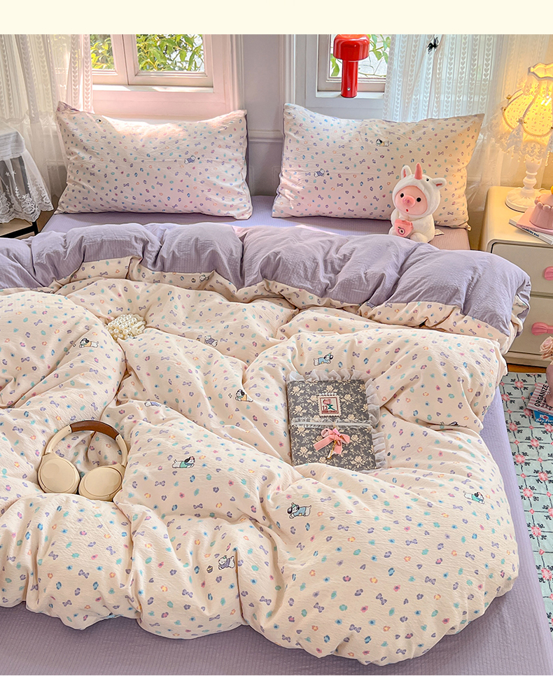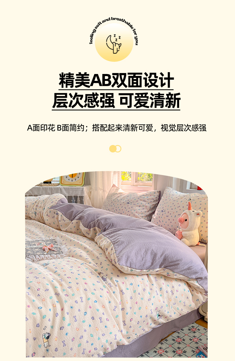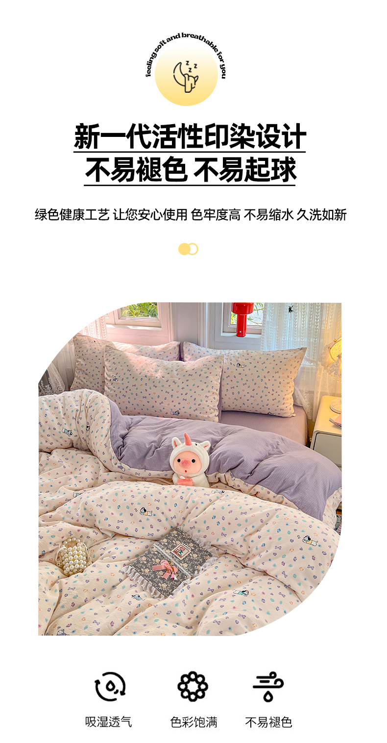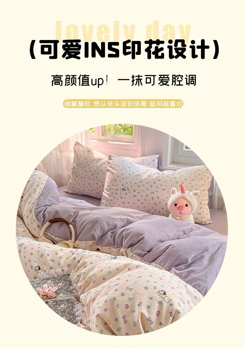 当前位置: 91家纺网 > 商品网购 > 床品套件 > 四件套 > 双层纱四件套 > 优尚佳生活馆 2025新款高克重云感双层纱印花四件套 彩心萌踪