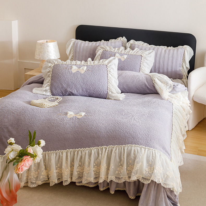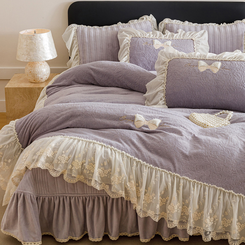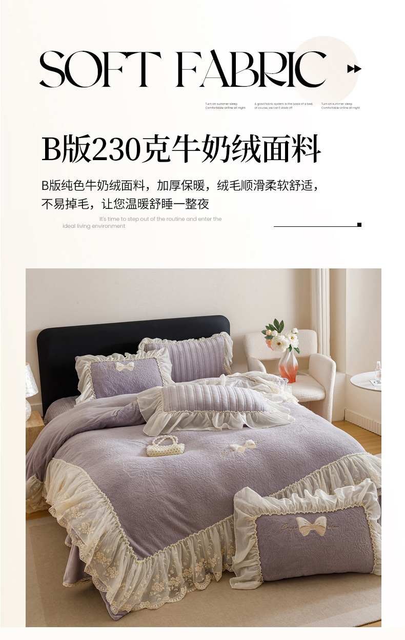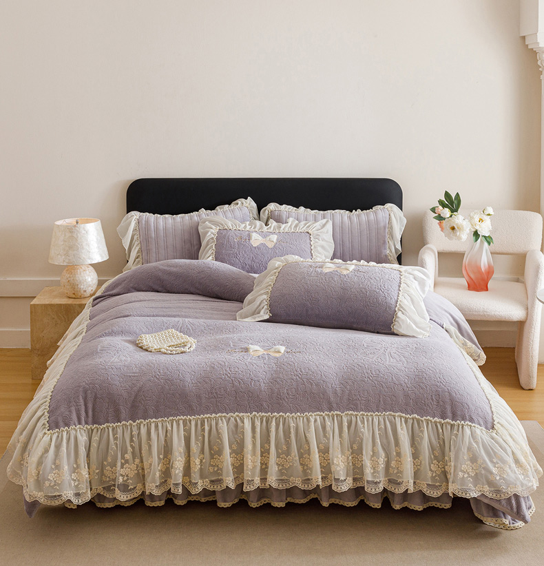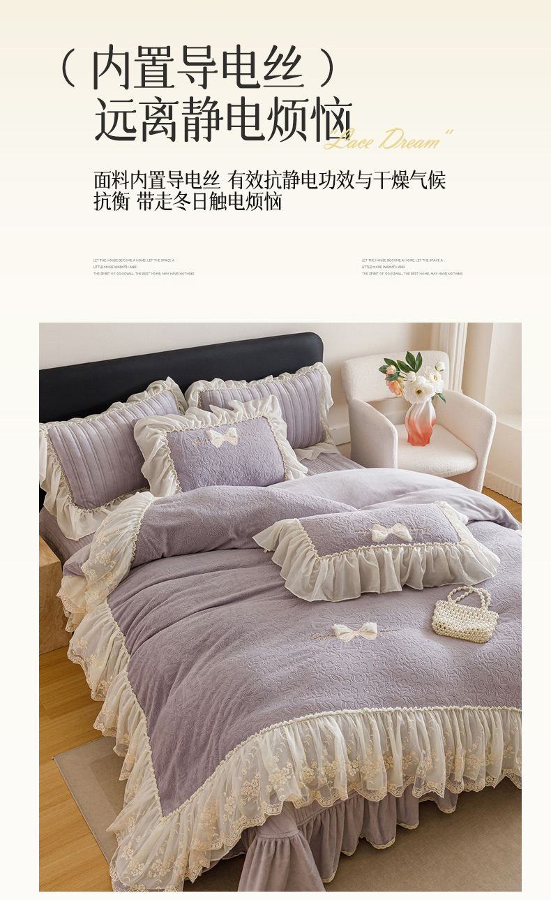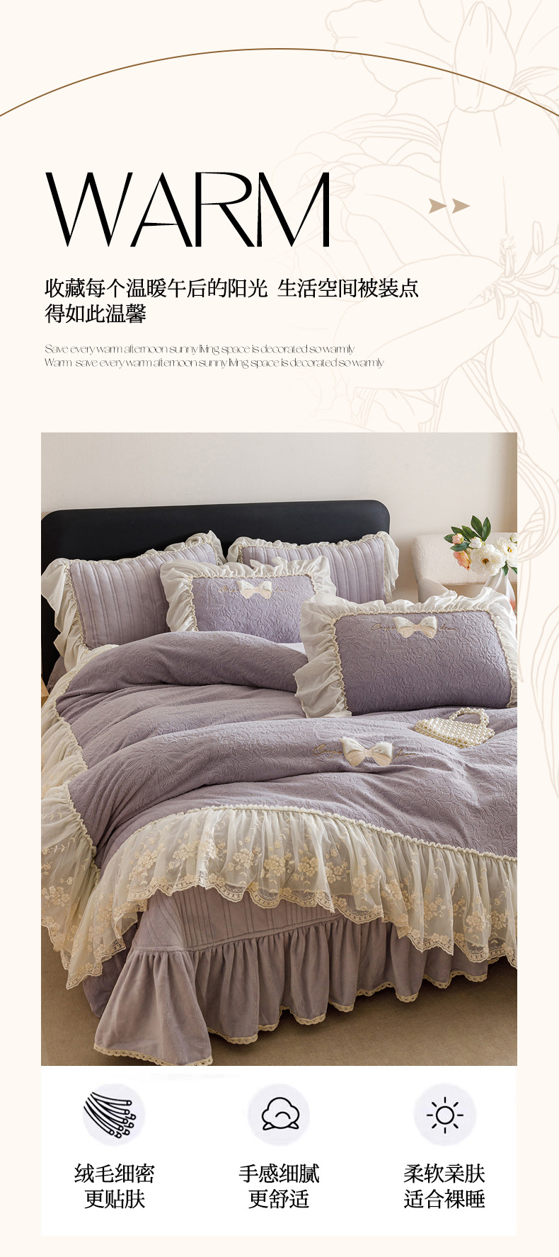 当前位置: 91家纺网 > 商品网购 > 床品套件 > 四件套 > 牛奶绒四件套 > 菊上家纺 2025新款雕花绒牛奶绒夹棉床盖款四件套-蝴蝶仙子 蝴蝶仙子-紫