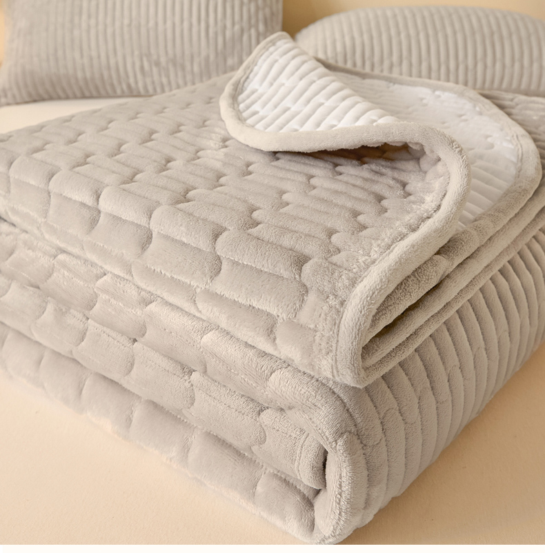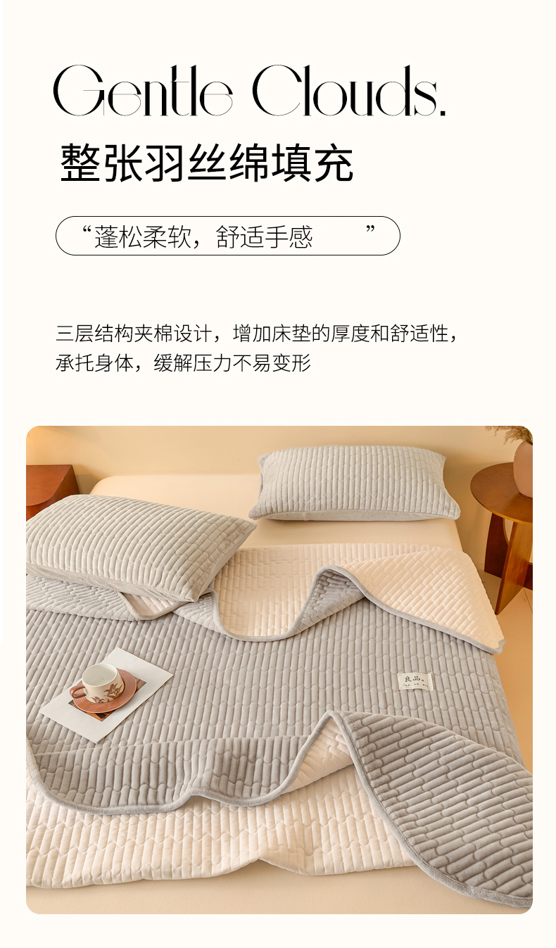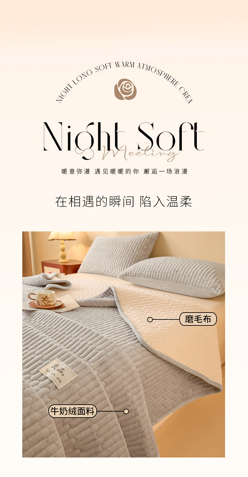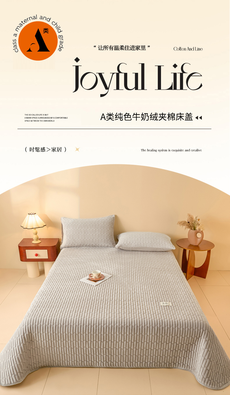 • 91家纺网 家纺一手货源 找家纺 Sweet dreams甜梦 2025新款A类纯色牛奶绒夹棉床盖 浅灰