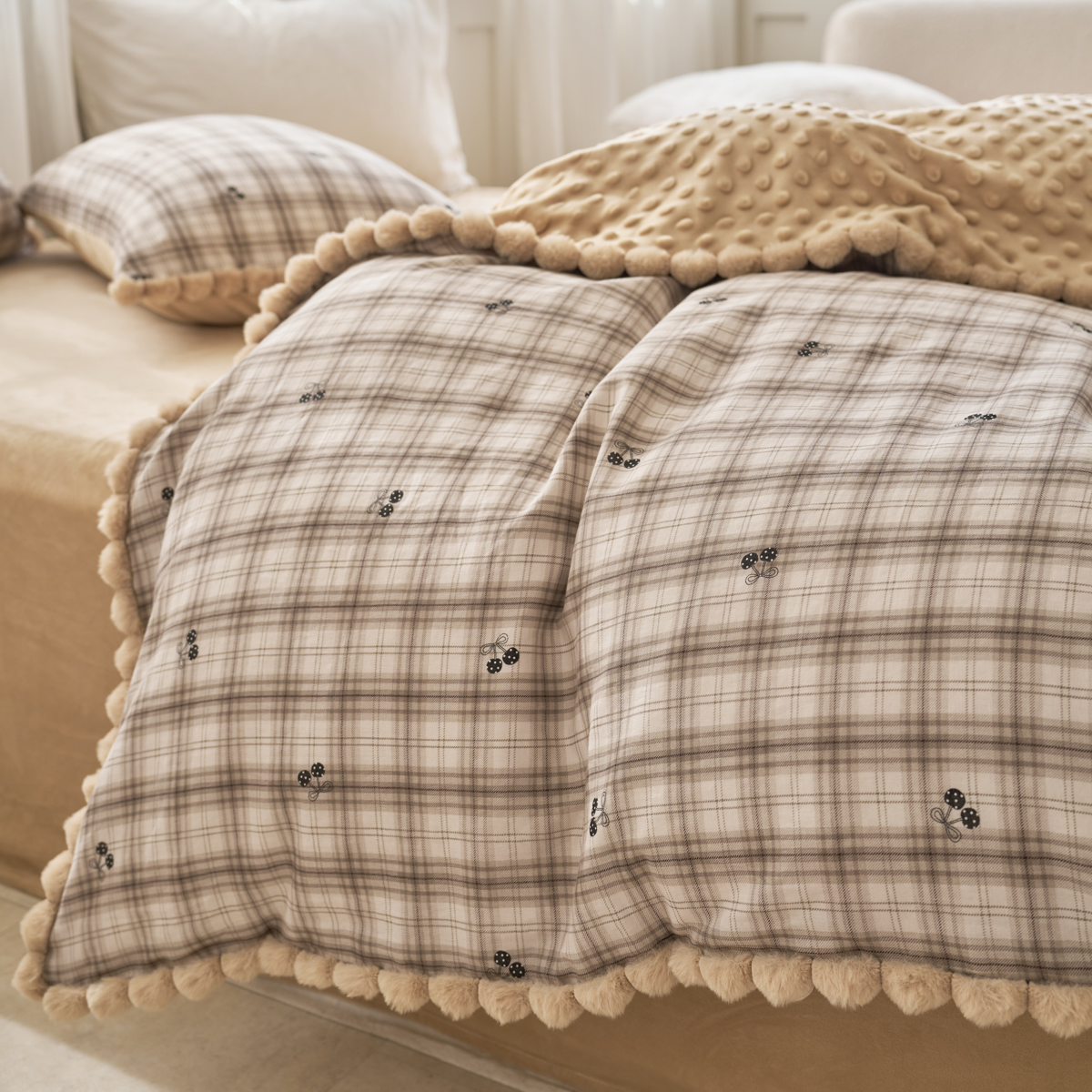 (总)洋铭区(原狠狠爱) 2025秋冬双层纱毛球球+豆豆绒四件套系列,爱莎玫瑰,丁香小花,复古 红樱桃,公主小熊,乖宝小熊,咖啡花香,萌趣宝宝,秘密花园,水仙绿花,小果粉花,小圆圆-深紫,小圆圆-黑,小圆圆-紫,紫蝶点点
