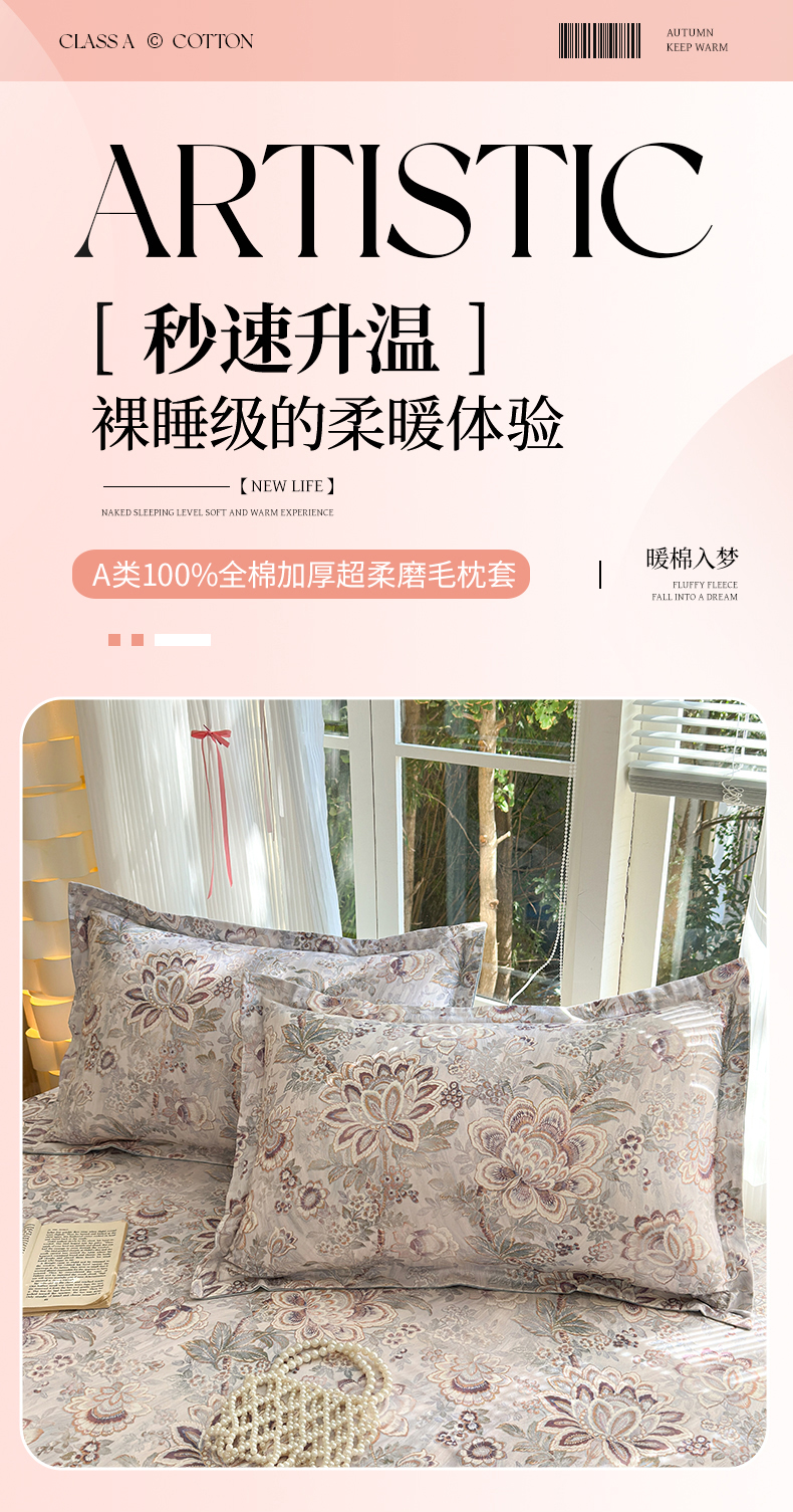 商品名称:拾物记 2025新款A类全棉纯棉加厚超柔磨毛单枕套(提供买家秀质检报告和实验视频) 芙丽