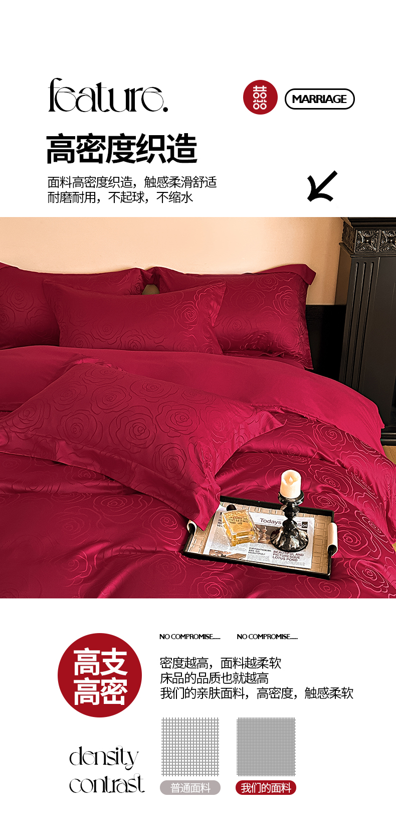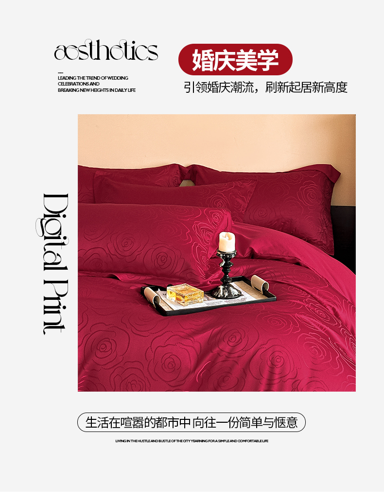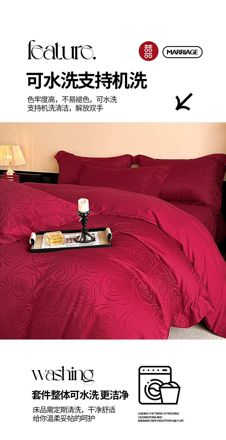 当前位置: 91家纺网 > 商品网购 > 床品套件 > 四件套 > 婚庆四件套 > 置顶家纺 2025新款亲肤提花玫瑰婚庆四件套 玫瑰予你-酒红