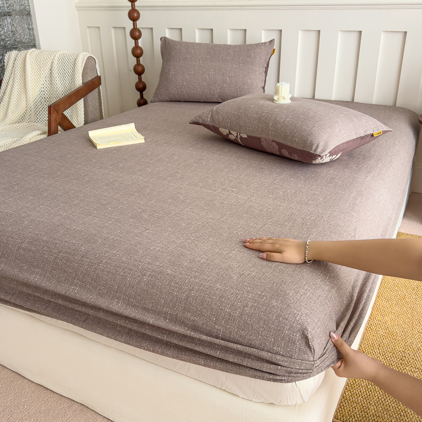 灿哈家纺 2025新款纯色简约麻床笠单品床笠床笠单件单床笠 深咖
