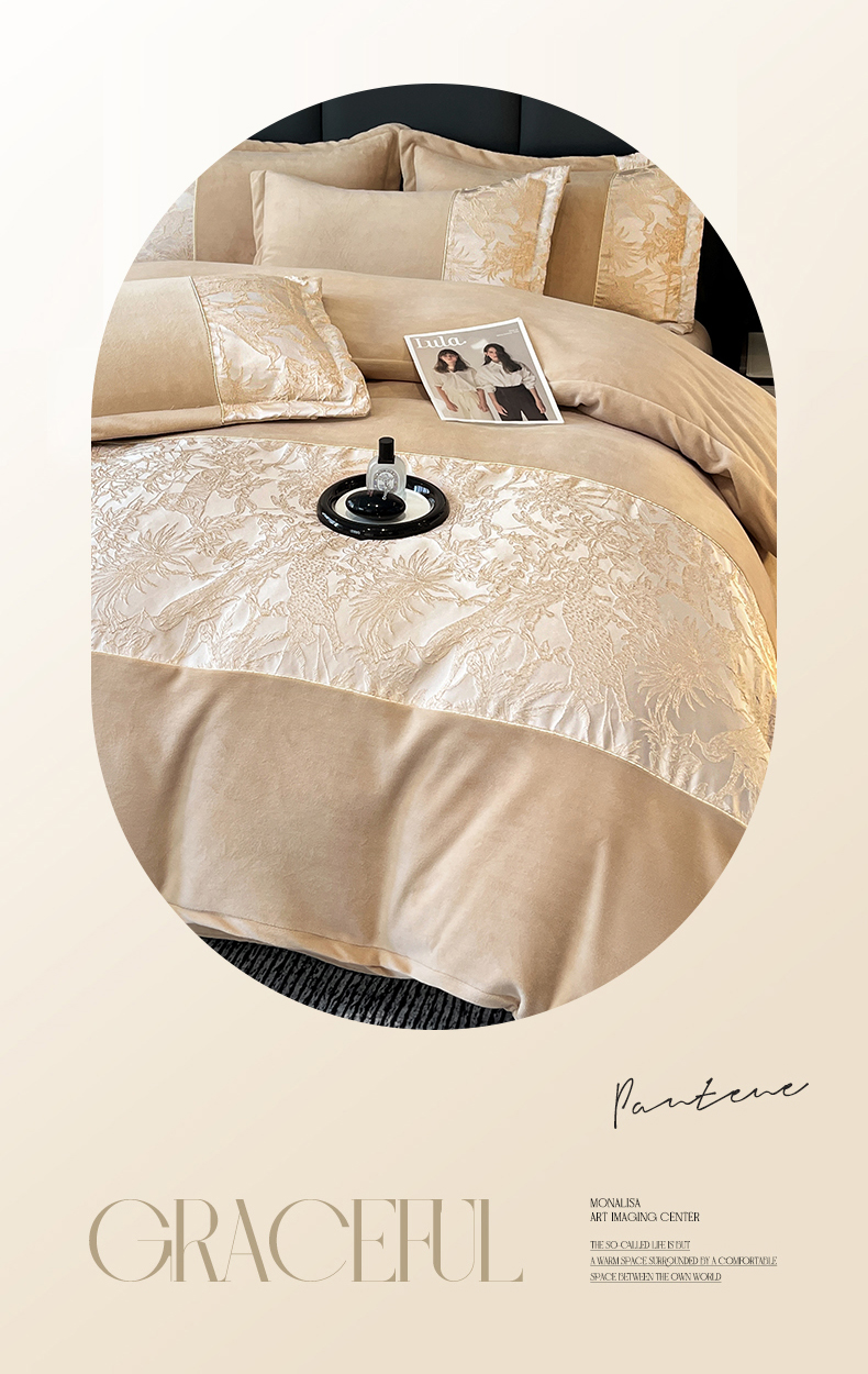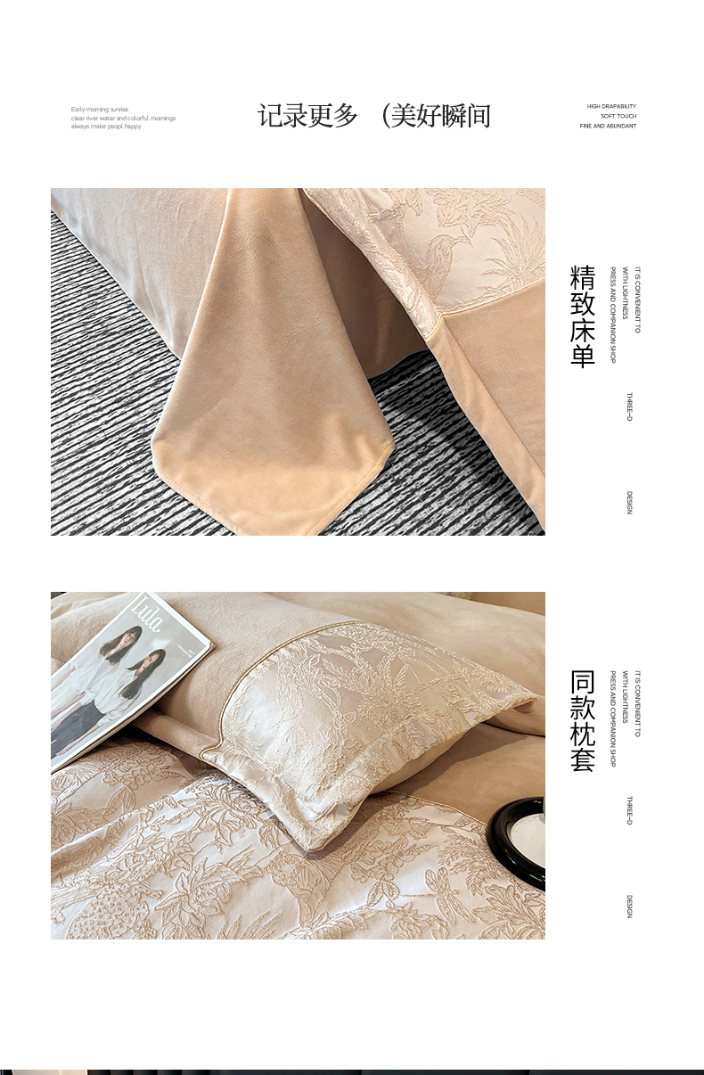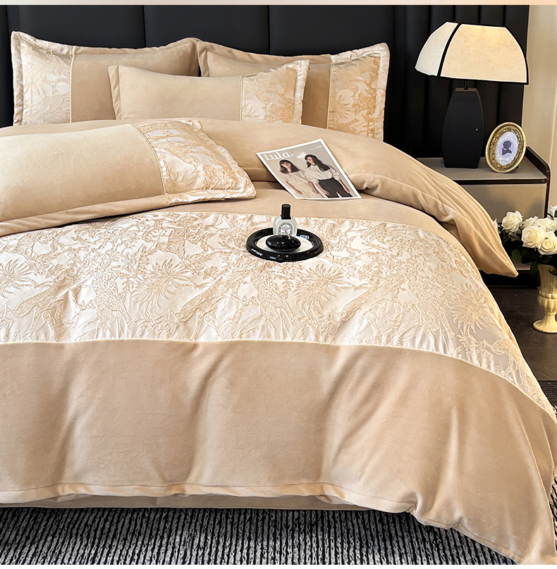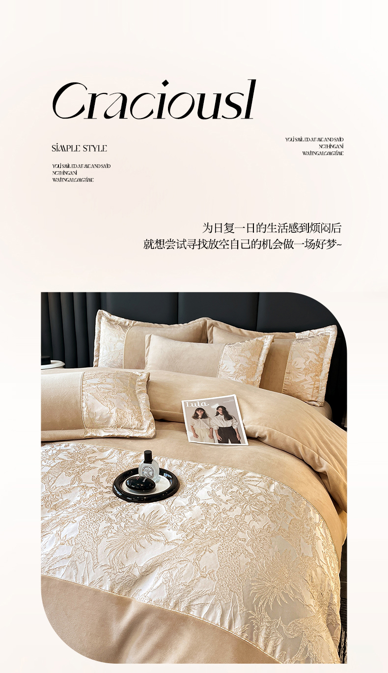 (总)富宁家纺 2025新款立体雕花牛奶绒绣花四件套-洛卡玫瑰系列,洛卡白,玫瑰灰,洛卡咖,玫瑰粉,洛卡蓝
