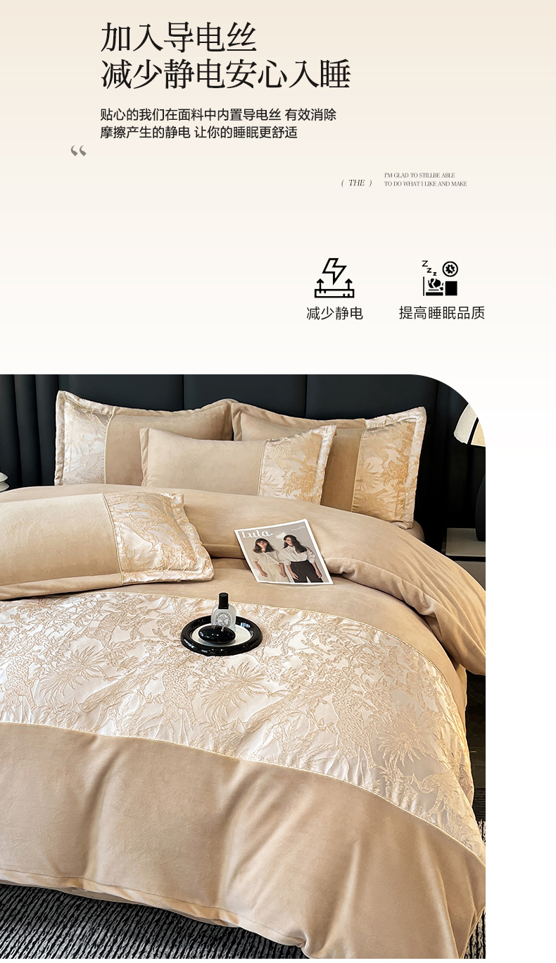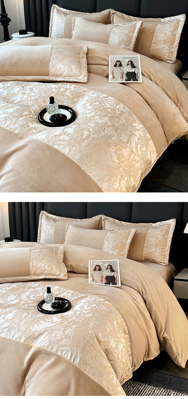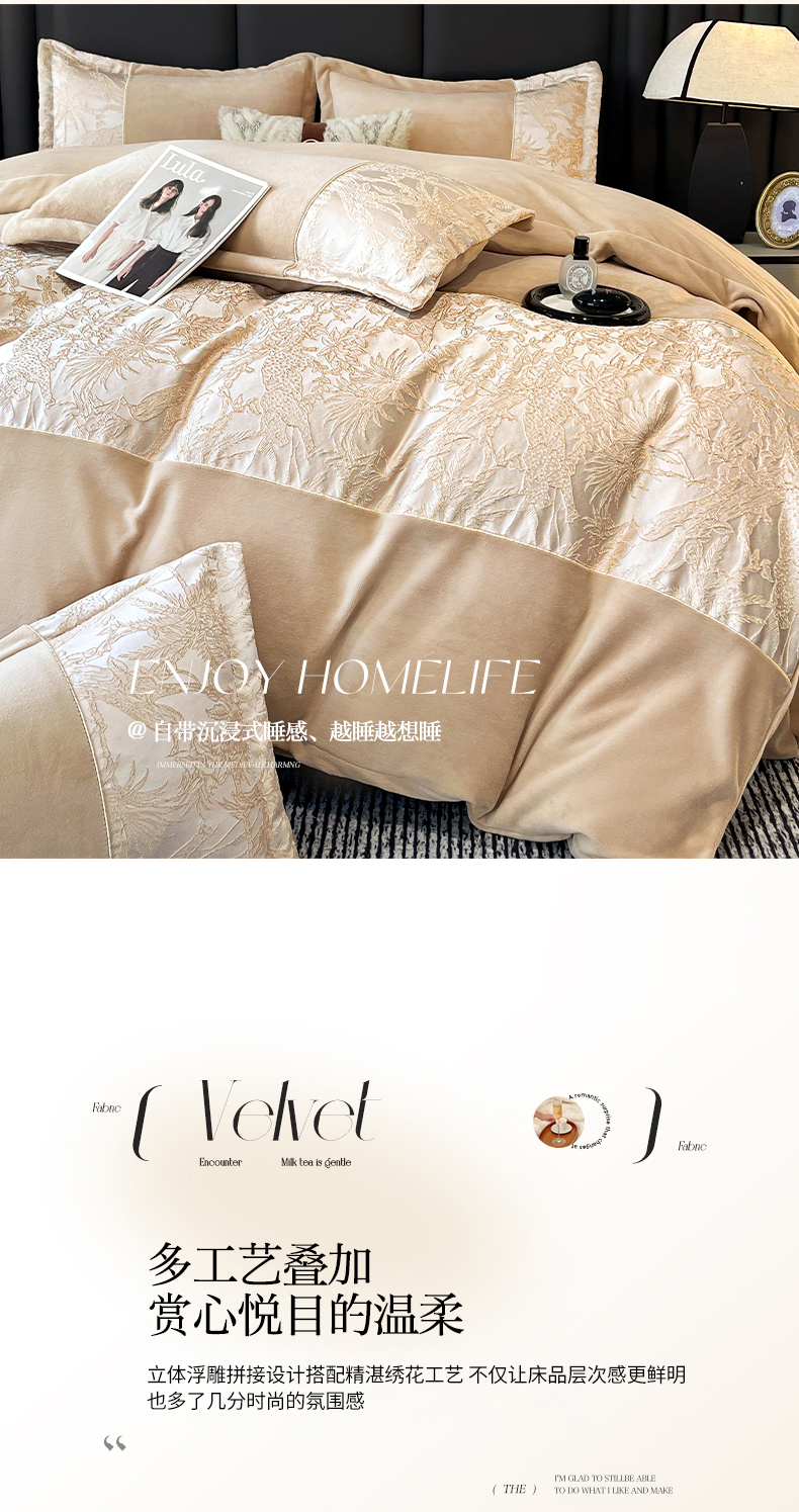 富宁家纺 2025新款立体雕花牛奶绒绣花四件套-洛卡玫瑰系列 洛卡咖