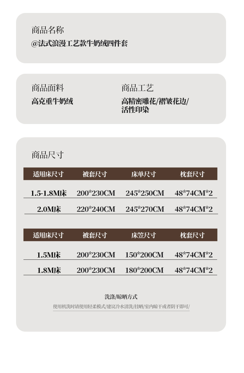 (总)凯儿家纺 2025新款全消光牛奶绒法式公主风花边工艺款四件套-赫本,赫本-粉,赫本-灰,赫本-米