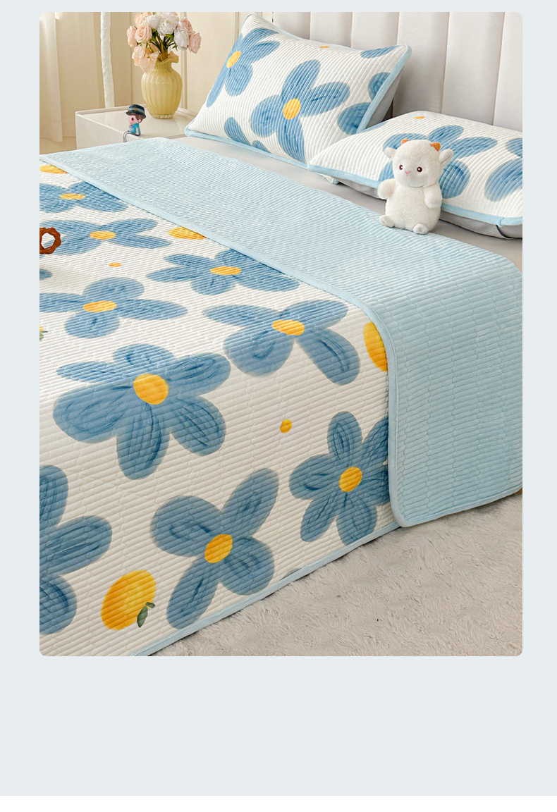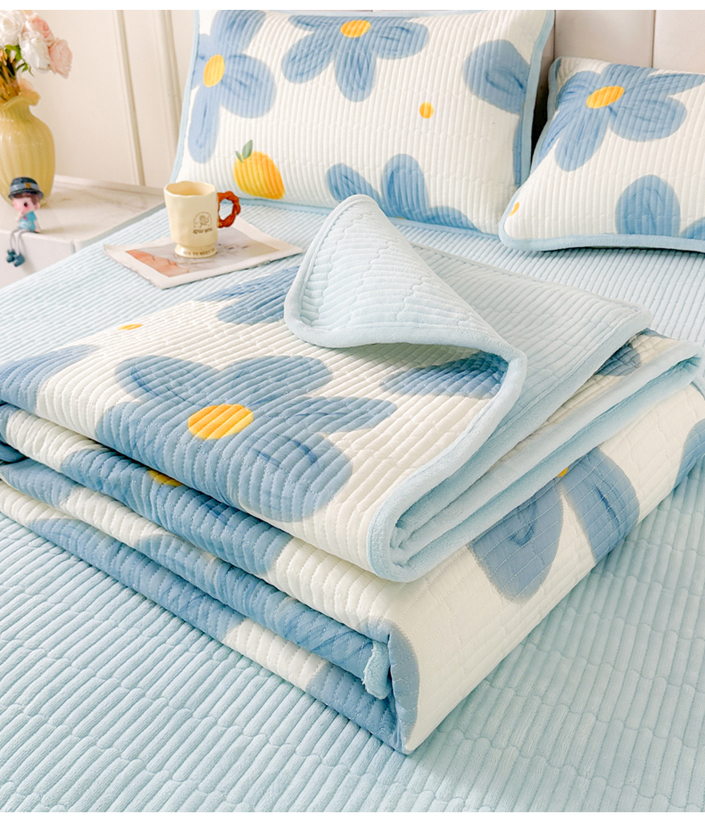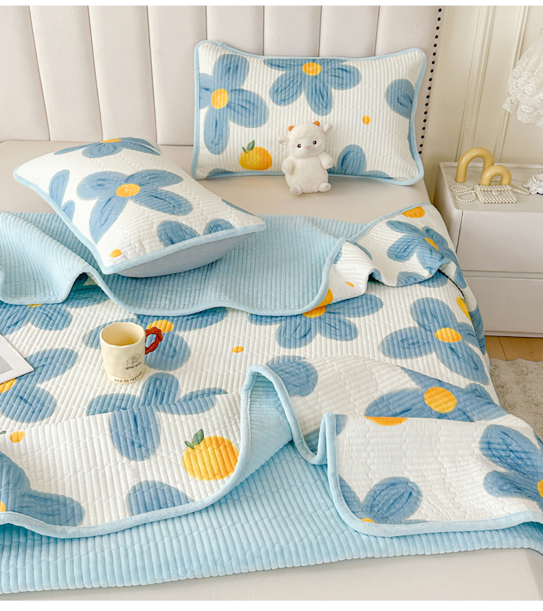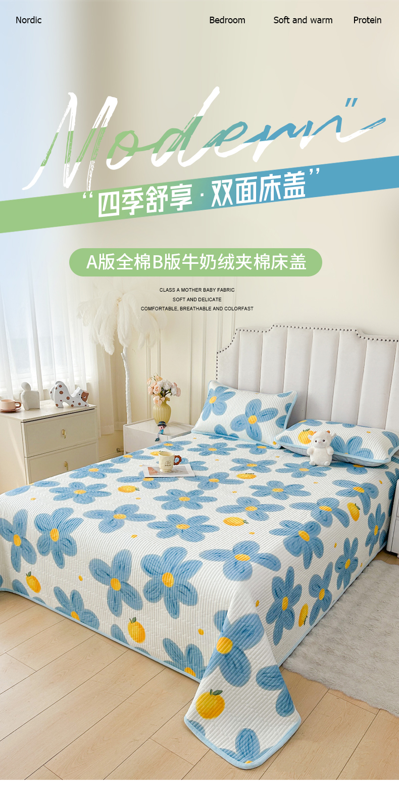 • 91家纺网 家纺一手货源 找家纺 LIFE.丽芙 2025新款A类四季可用A版全棉数码印花B版牛奶绒单件夹棉炕盖床盖三件套 床盖-向阳花
