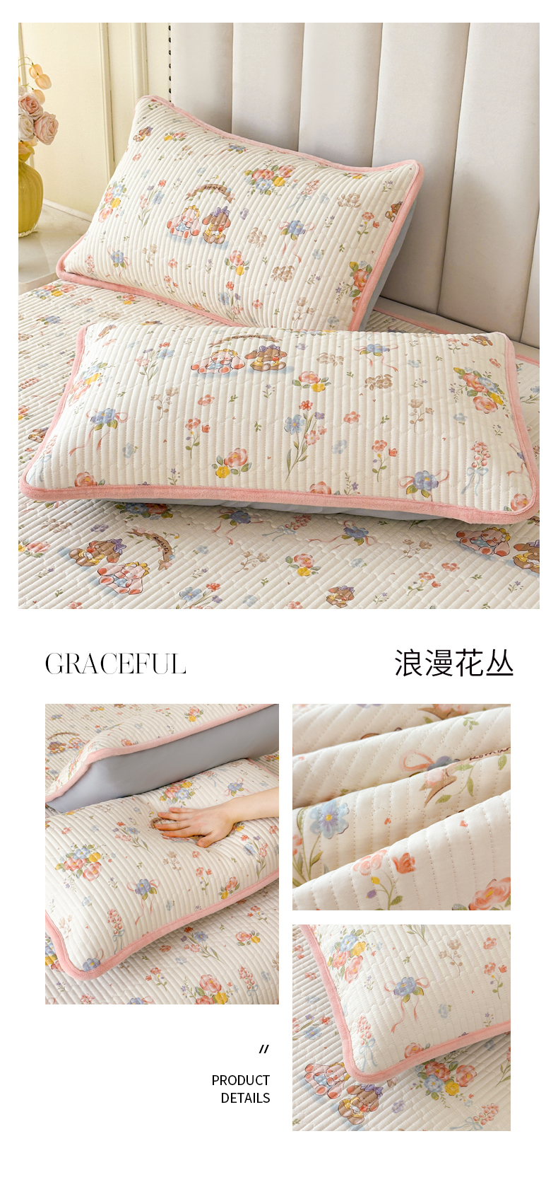 商品名称:LIFE.丽芙 2025新款A类全棉夹棉包边枕套 浪漫花丛