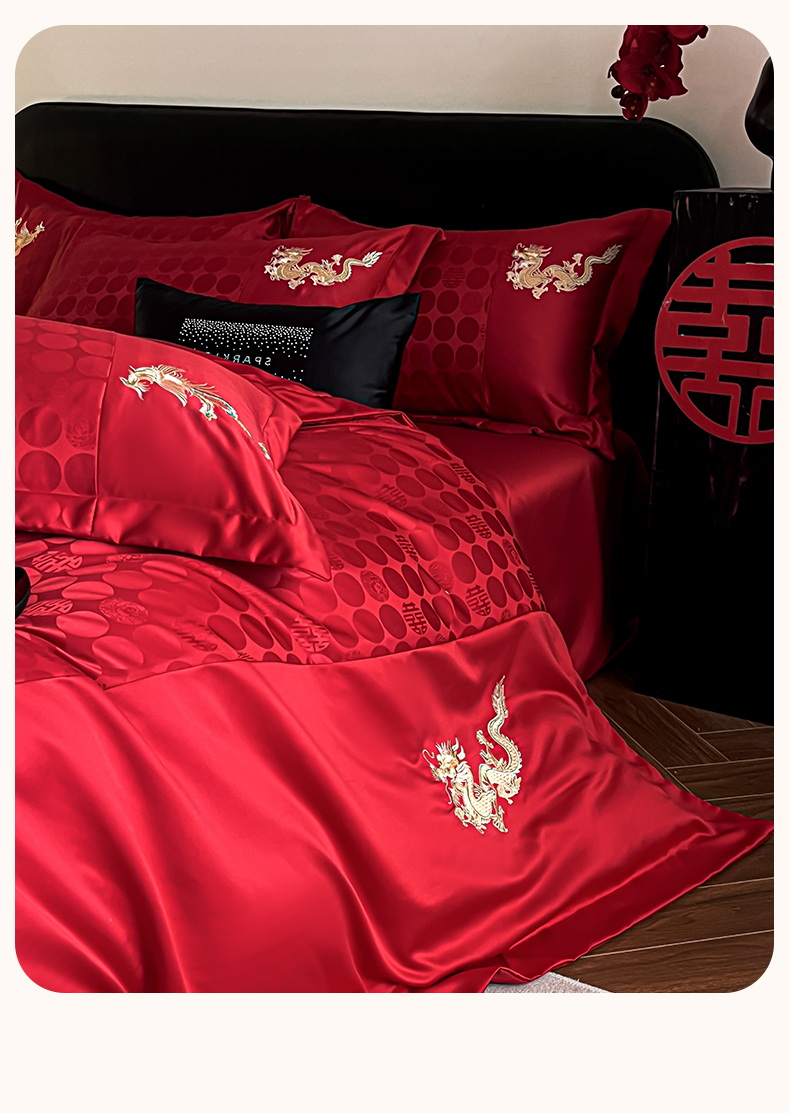 (总)欧乐蒂 2025新款设计师原创亲肤棉婚庆四件套,云喜东方,双喜临门,喜乐,喜事连连,爱恋,玫瑰爱恋,花开富贵,金枝玉叶,锦绣佳缘,龙姿风采