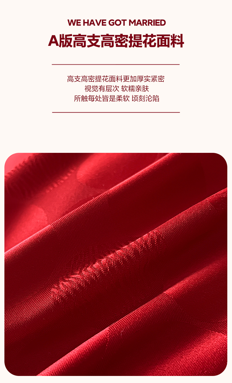 (总)欧乐蒂 2025新款高支高密提花婚庆四件套,龙凤美满,玫瑰情缘,双囍-红,双囍-金,叶叶情深