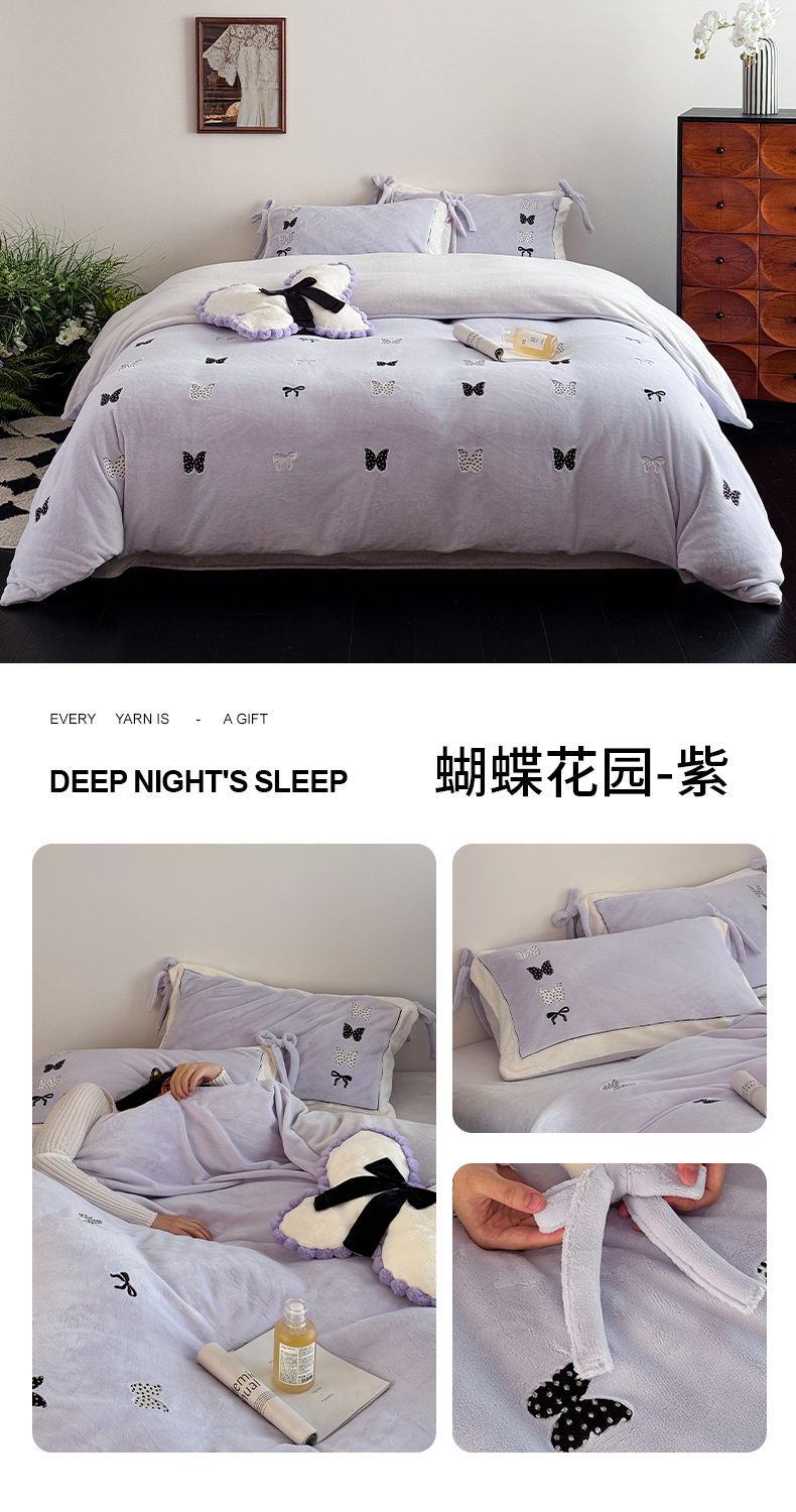 当前位置: 91家纺网 > 商品网购 > 床品套件 > 四件套 > 牛奶绒四件套 > 极简 2025新款牛奶绒刺绣款四件套-蝴蝶花园(标准尺寸会员减20) 蝴蝶花园-紫