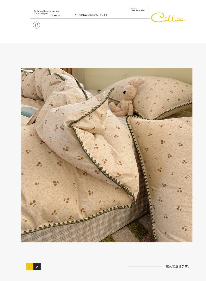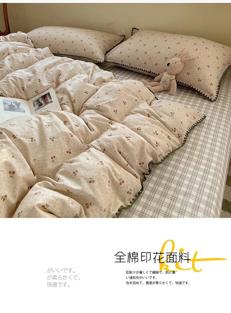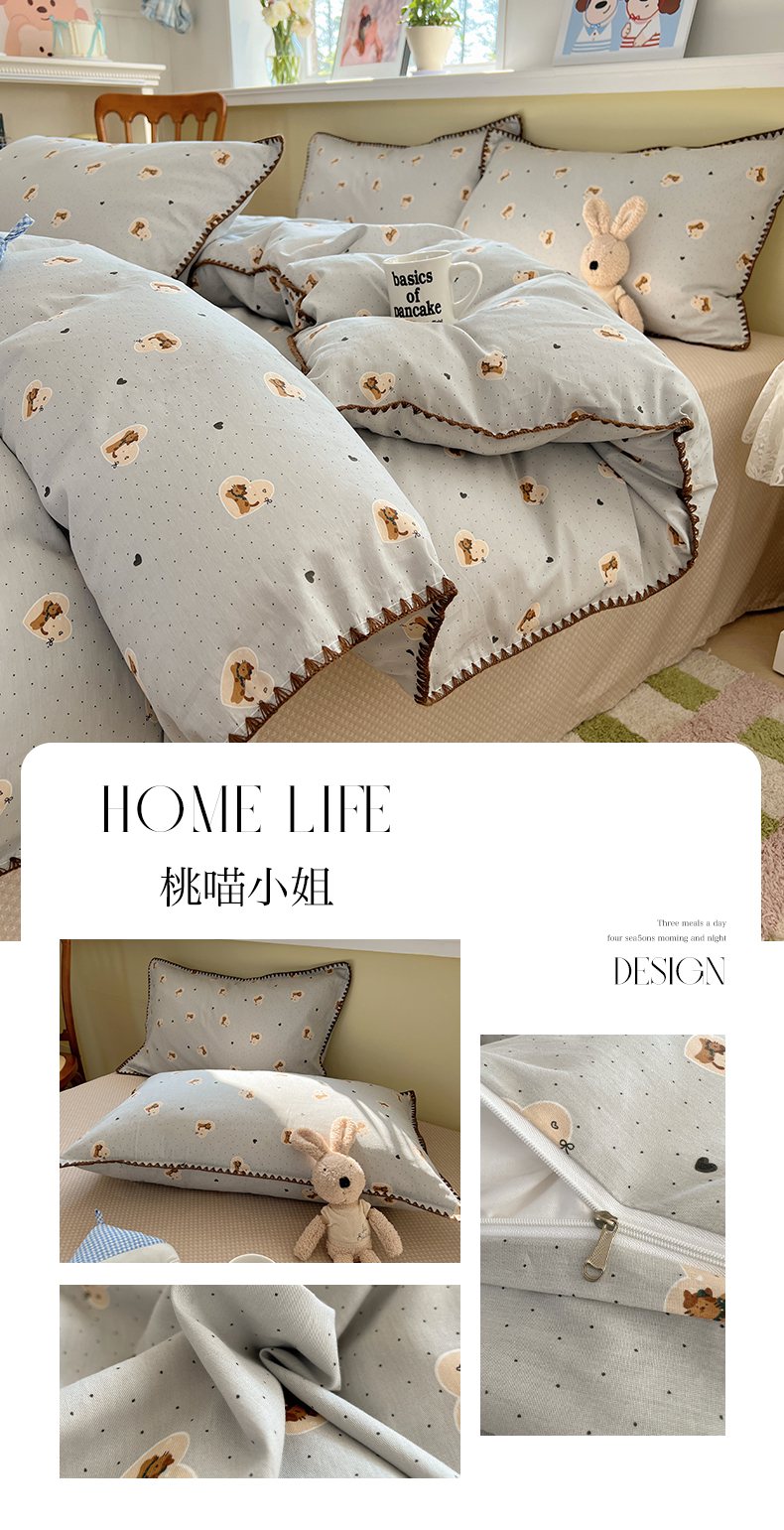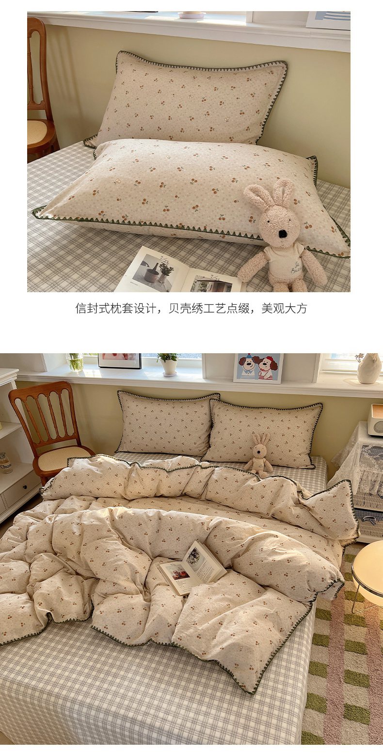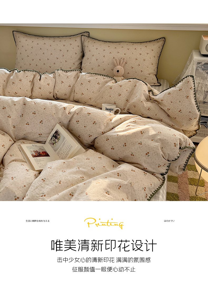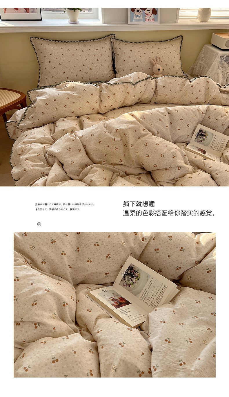 (总)瑞莱 2026新款A类全棉纯棉有氧双层纱四件套,白熊小姐,彩色木马,淡彩花笺,费尔岛小熊,焦糖奶汪-桔,焦糖奶汪-绿,萌星,苹果星星人,小樱桃,樱桃画报