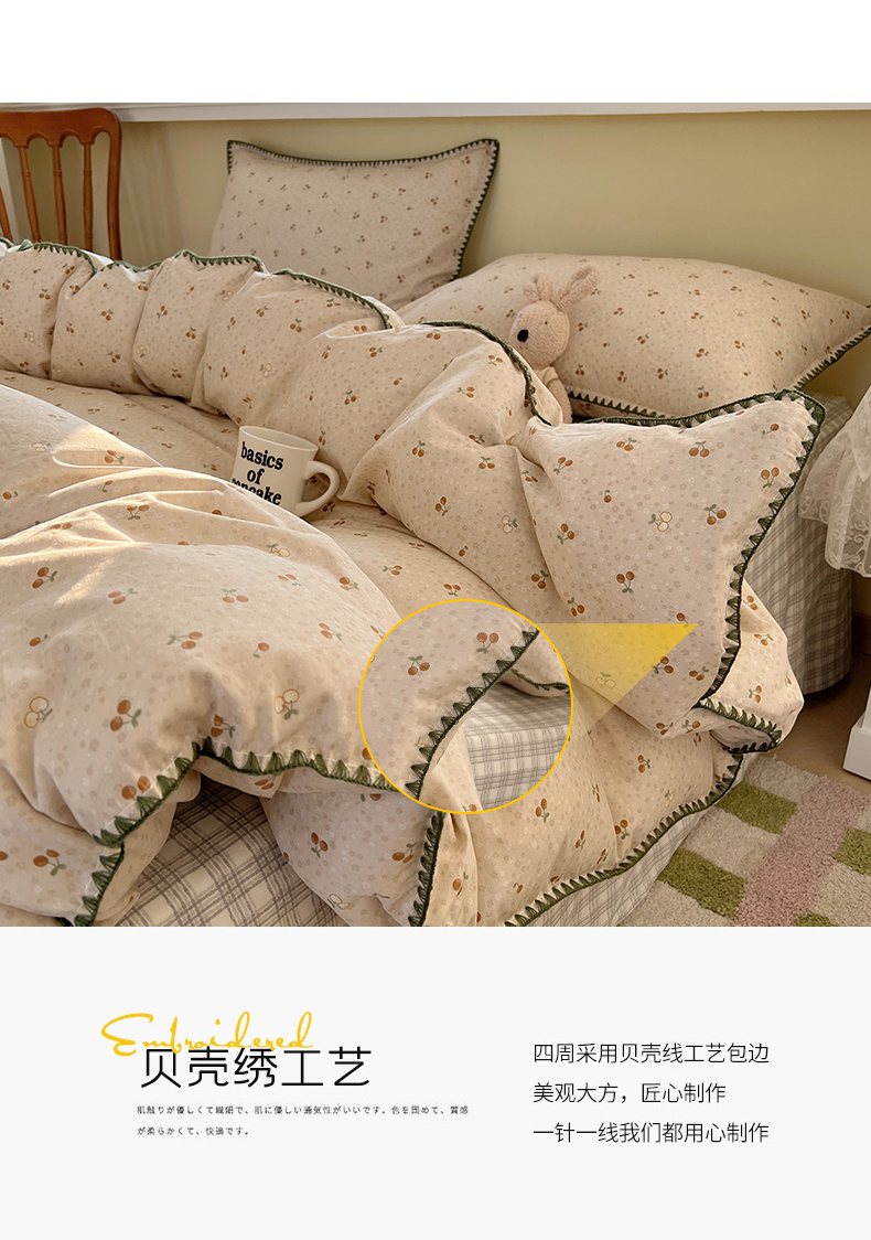 (总)瑞莱 2025新款全棉轻奢水洗棉贝壳绣四件套,豆沙,粉玉,米白,米黄,浅灰,浅蓝,深灰,深蓝,水绿,星蓝