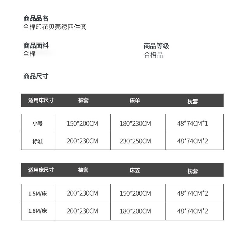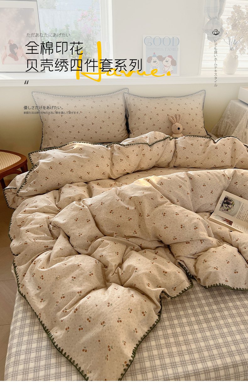 商品名称:瑞莱 2026新款全棉印花贝壳边四件套 刺绣潮声