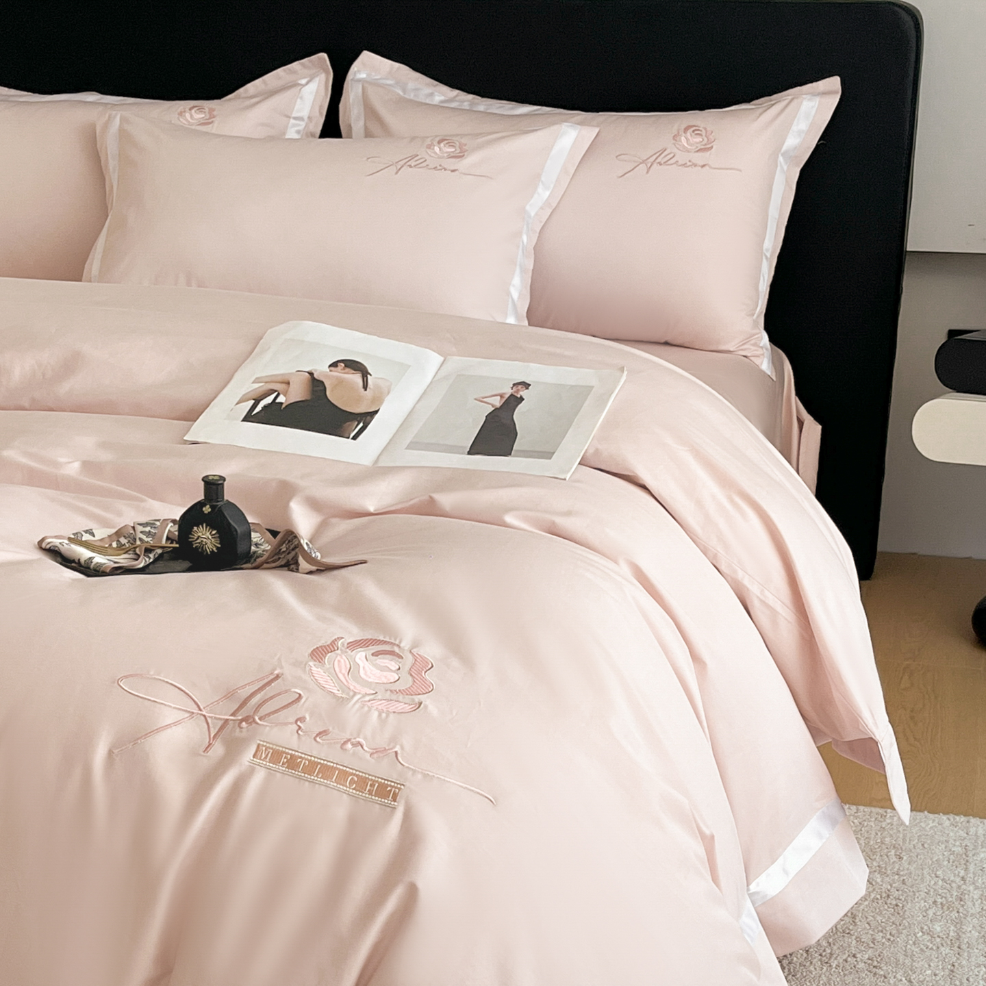 (总)新方向 2025新款刺绣全棉100s贡缎长绒棉四件套-威尔,威尔-蔷薇粉,威尔-爵士灰