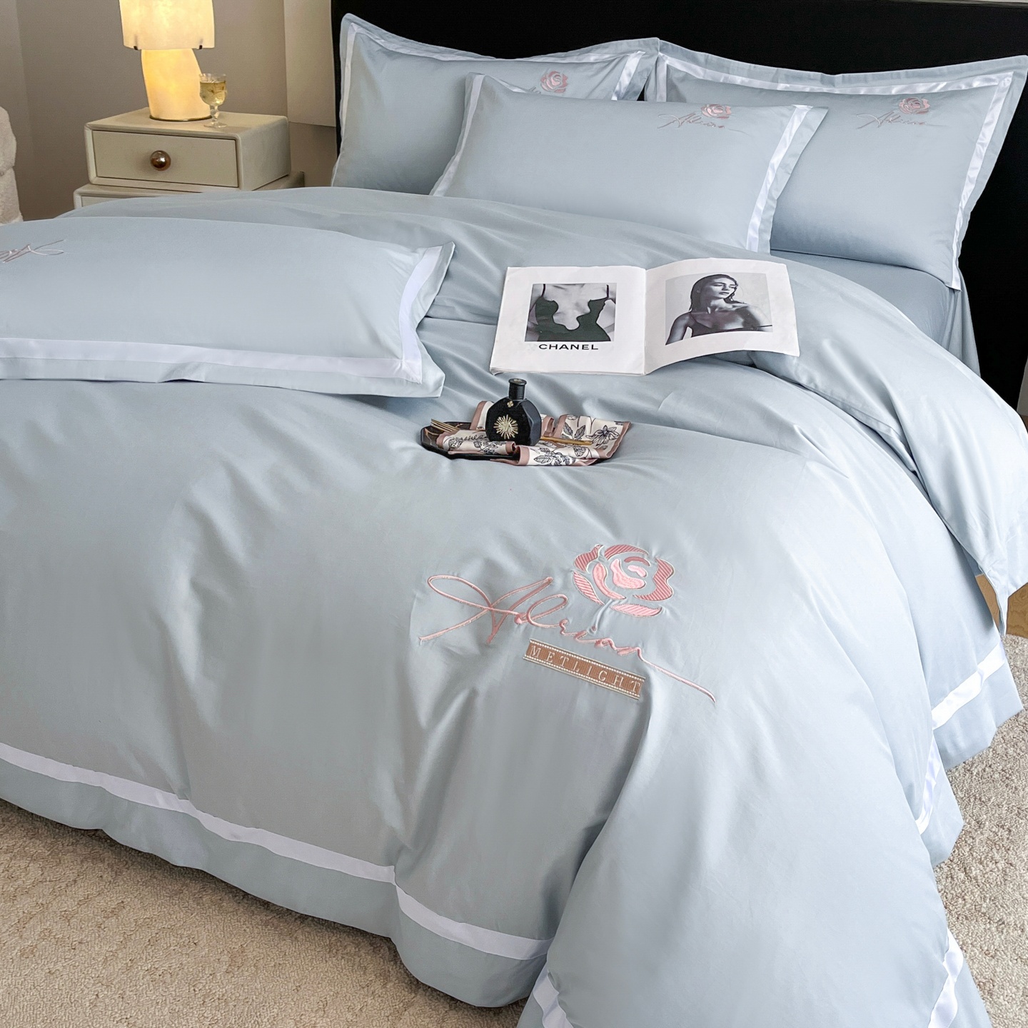 (总)新方向 2026新款刺绣全棉100s贡缎长绒棉四件套-茶花开了,茶花开了-蔷薇粉,茶花开了-香槟,茶花开了-星空蓝