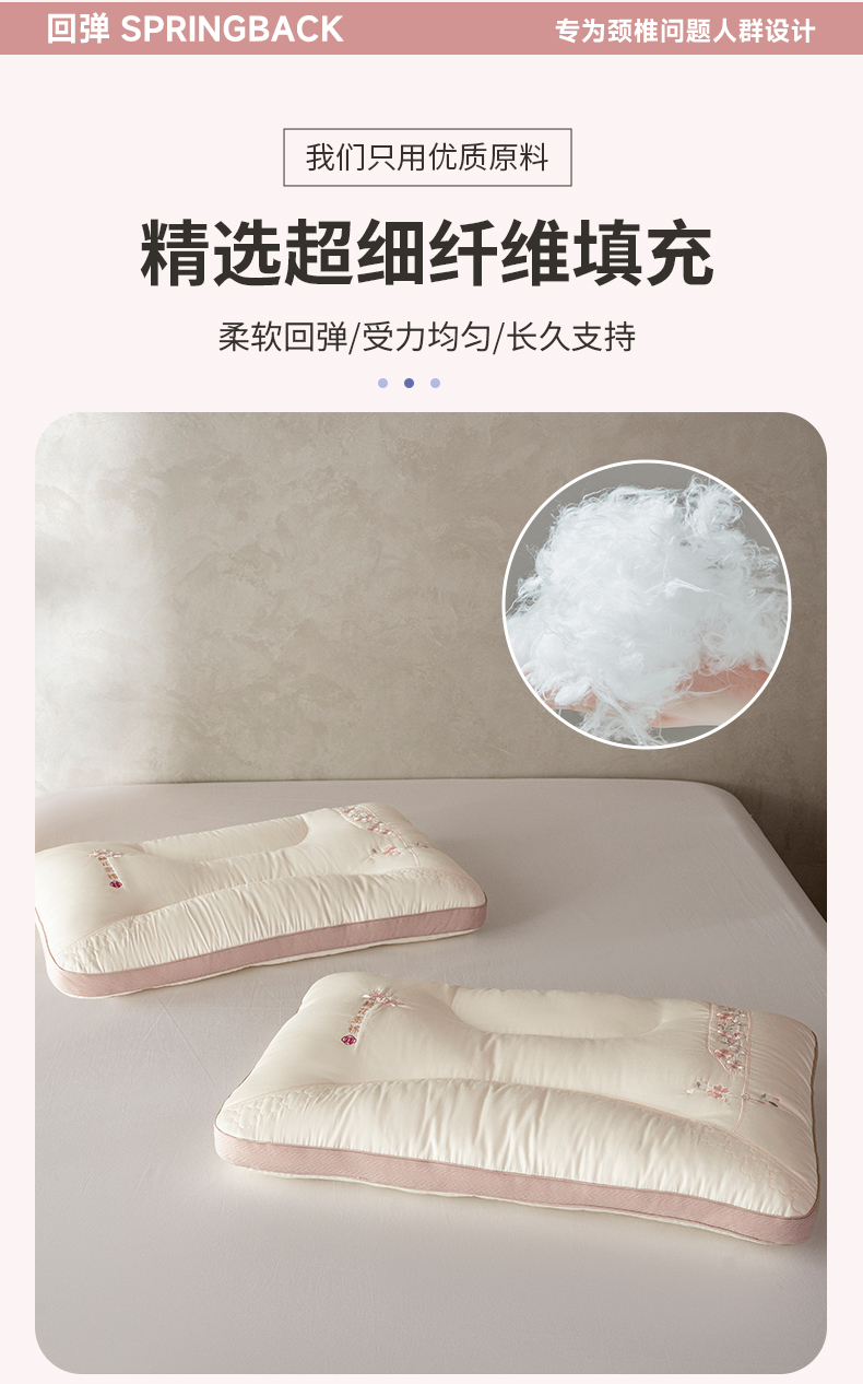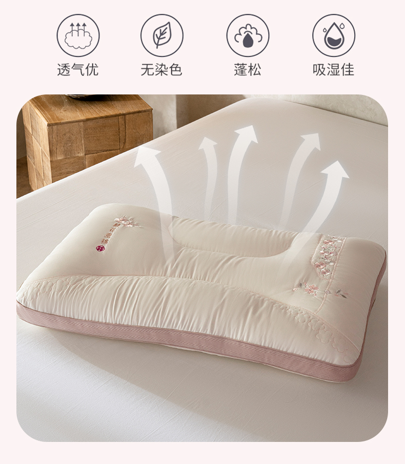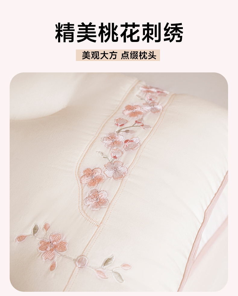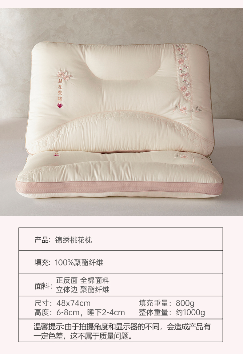 商品名称:昕科 2025新款锦绣桃花枕-全棉纯棉粉色桃花刺绣枕头枕芯 锦绣桃花枕一只